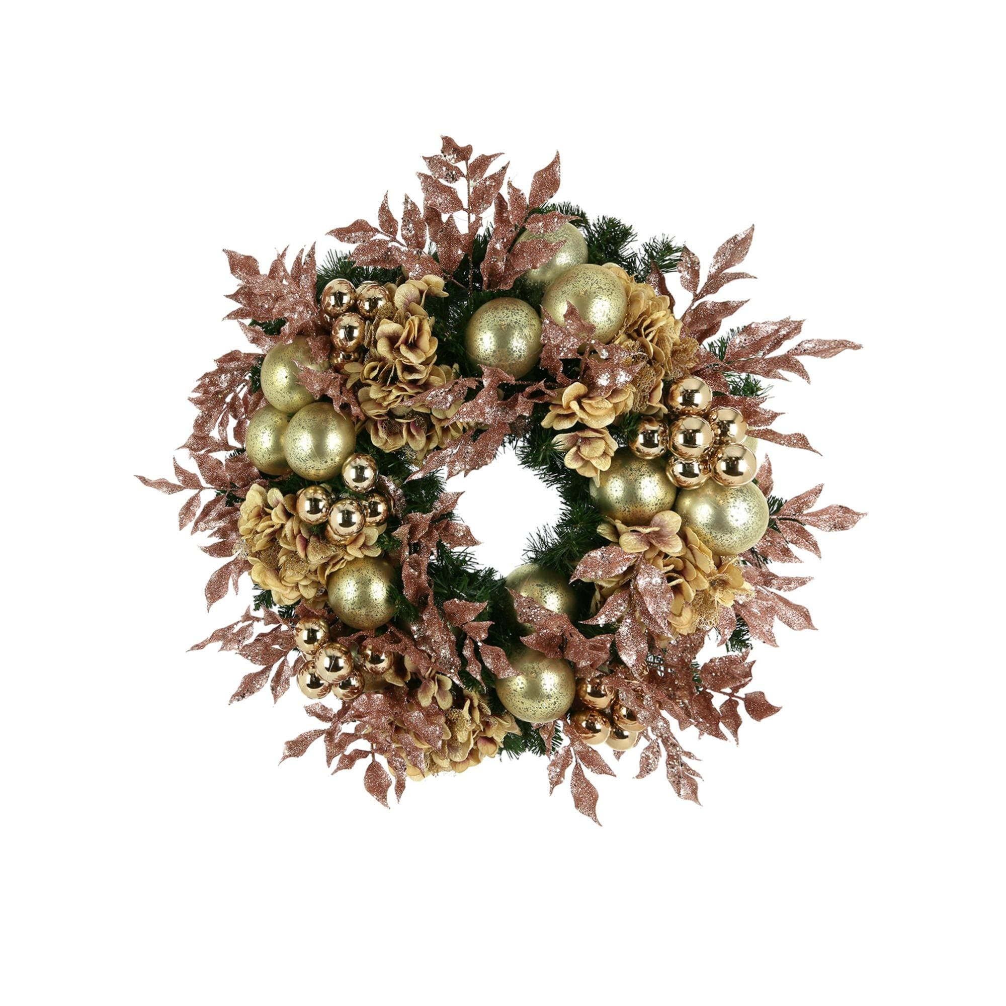 30" Christmas Holiday Wreath with Glitter Leaves and Pinecones
