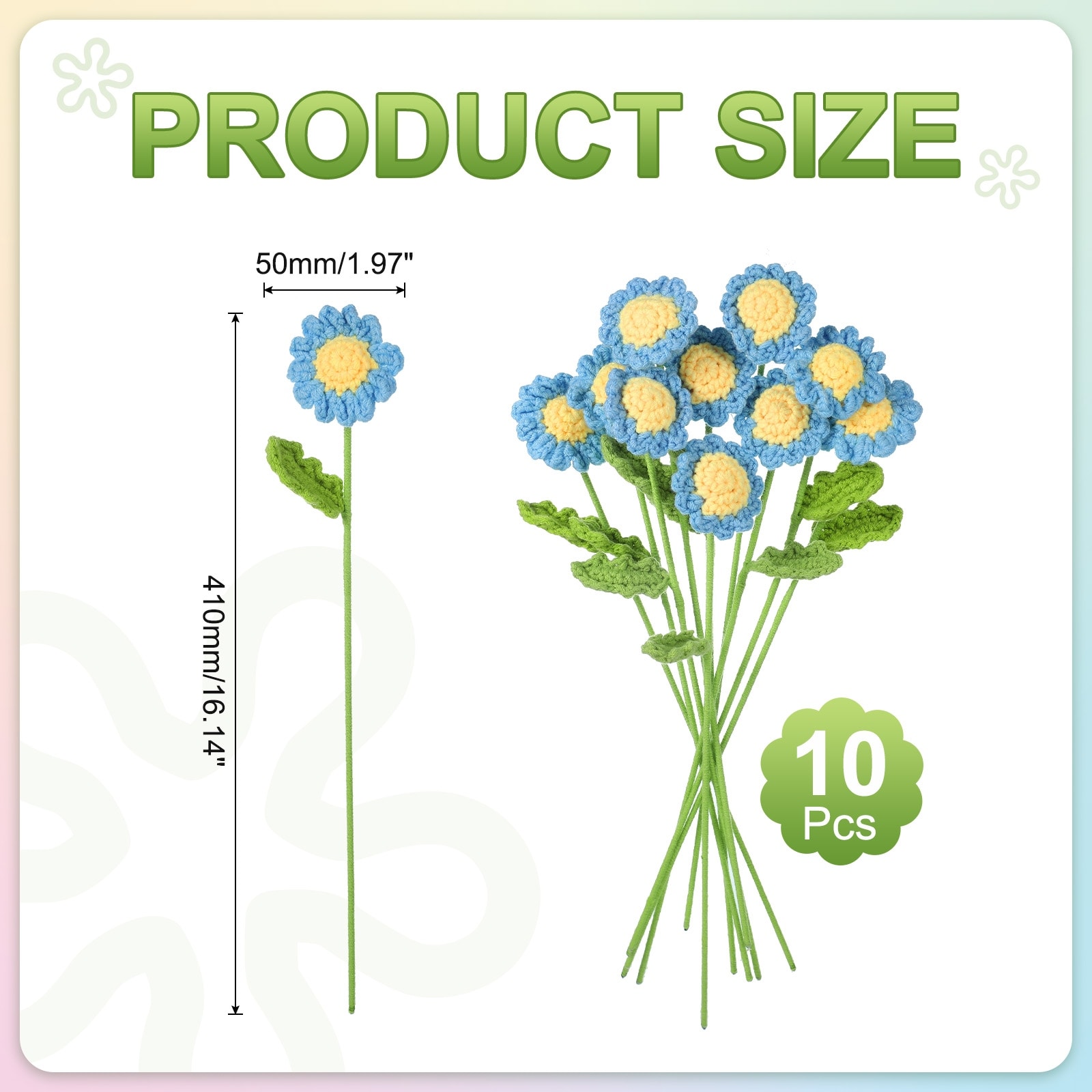 Crochet Flowers Handmade Knitting Daisy Artificial Woven Small Potted with Stems - 10 Pcs