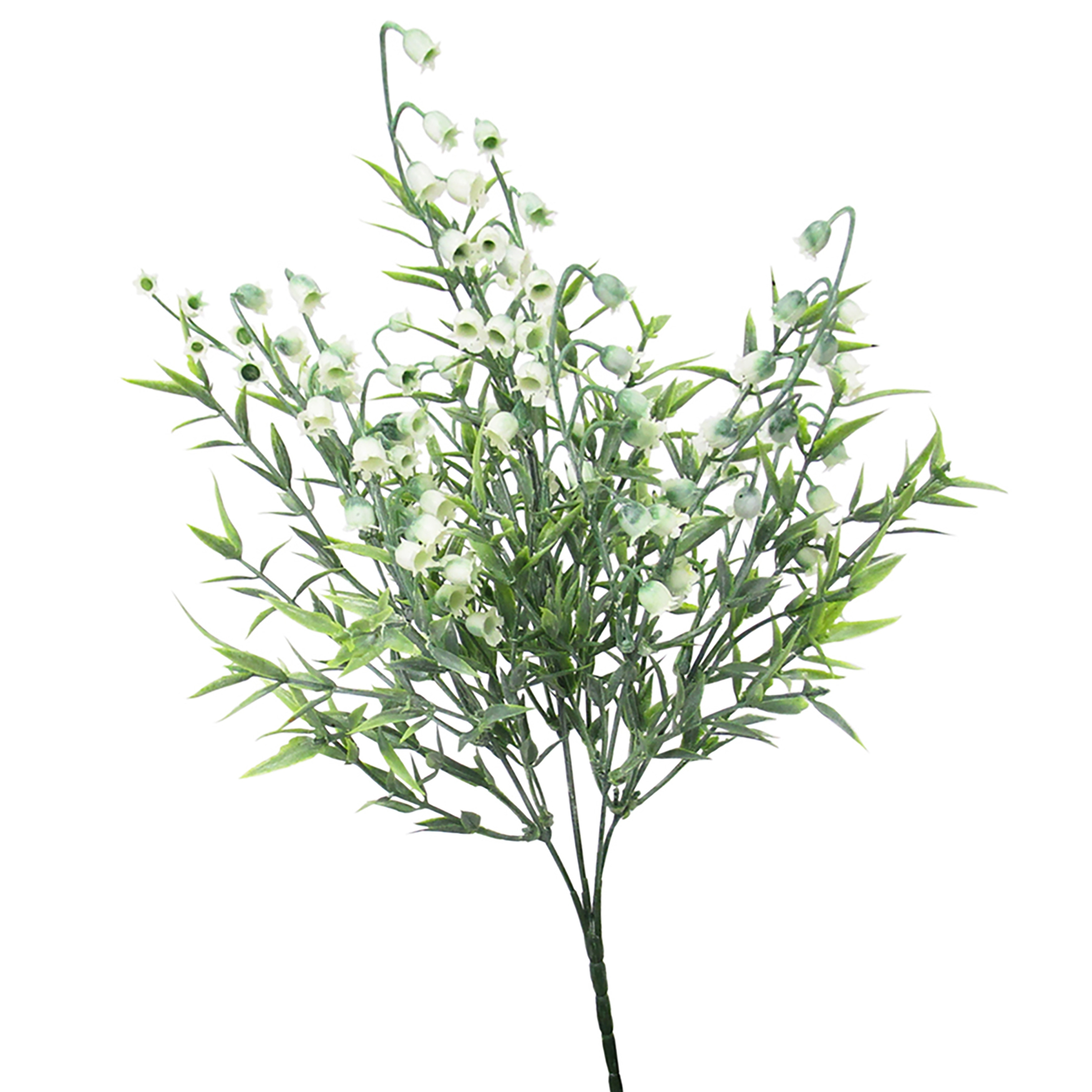 Set of 3 Frosted Green Artificial Lily of The Valley Flowering Leaf Stem Plant Greenery Foliage Bush 15in