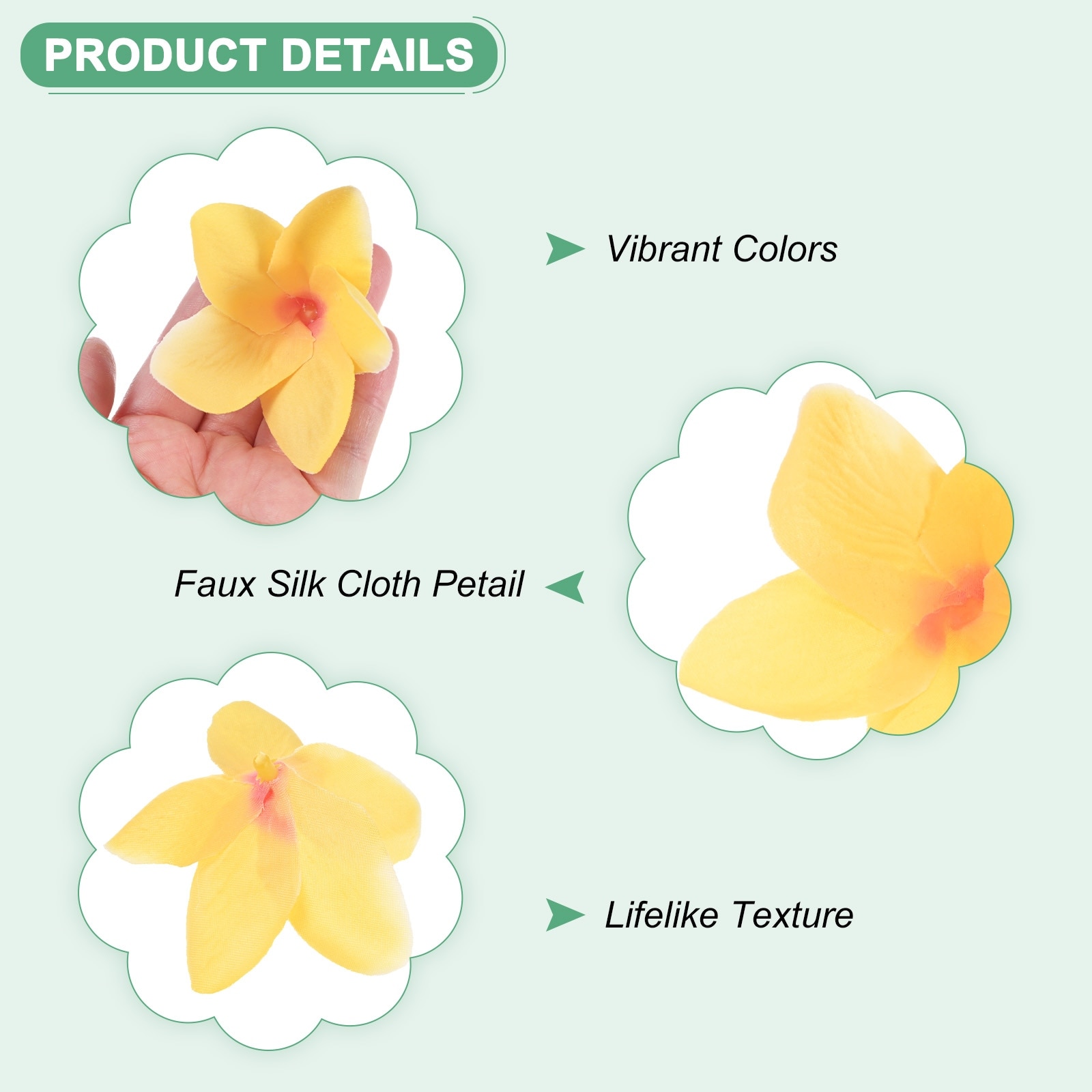 20-Pack Artificial Plumeria Flower Heads 2.4" Fake Plumeria Flowers Yellow+White