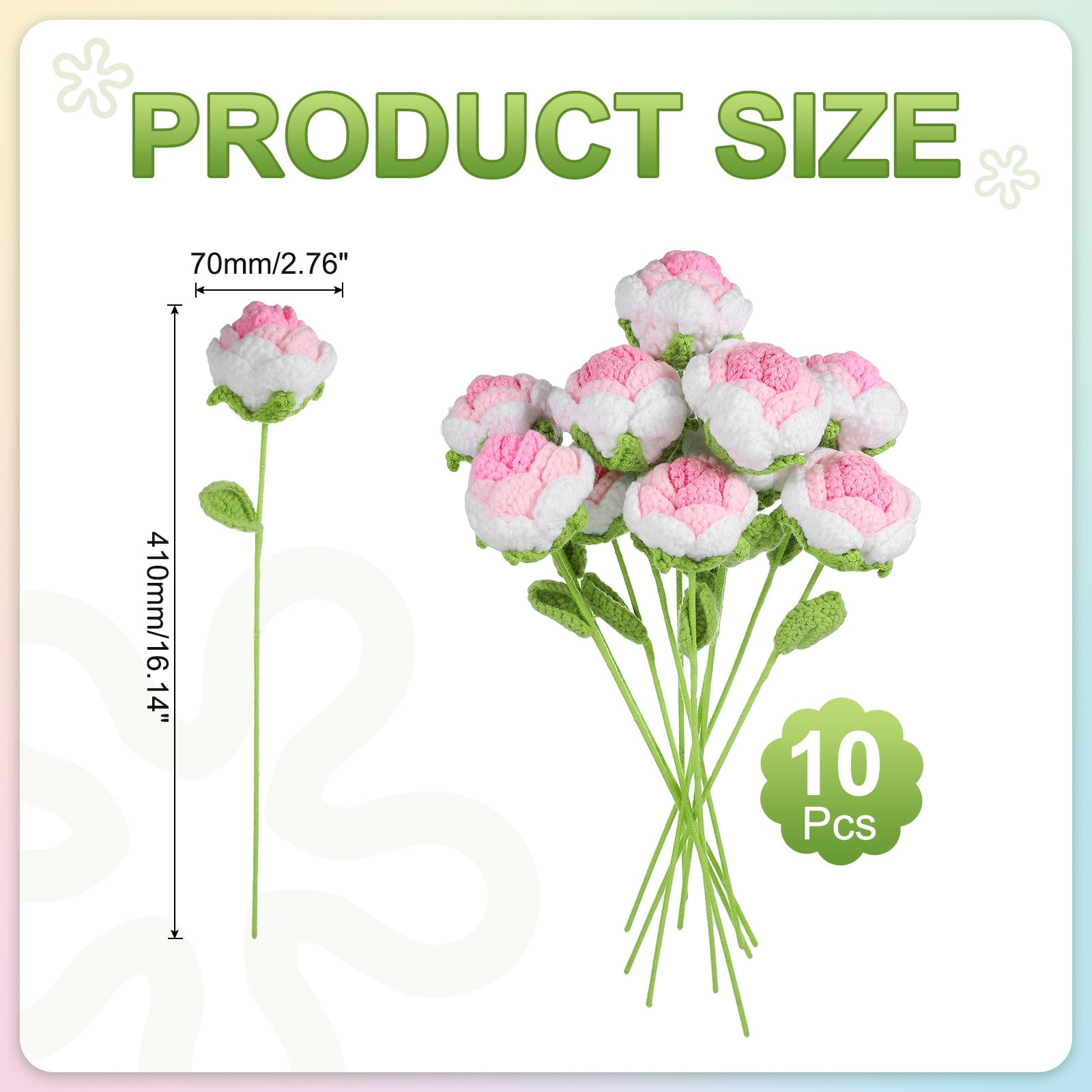 Crochet Flowers Handmade Knitting Rose Artificial Woven Small Potted with Stems for Valentine's Gifts Home Wedding Party