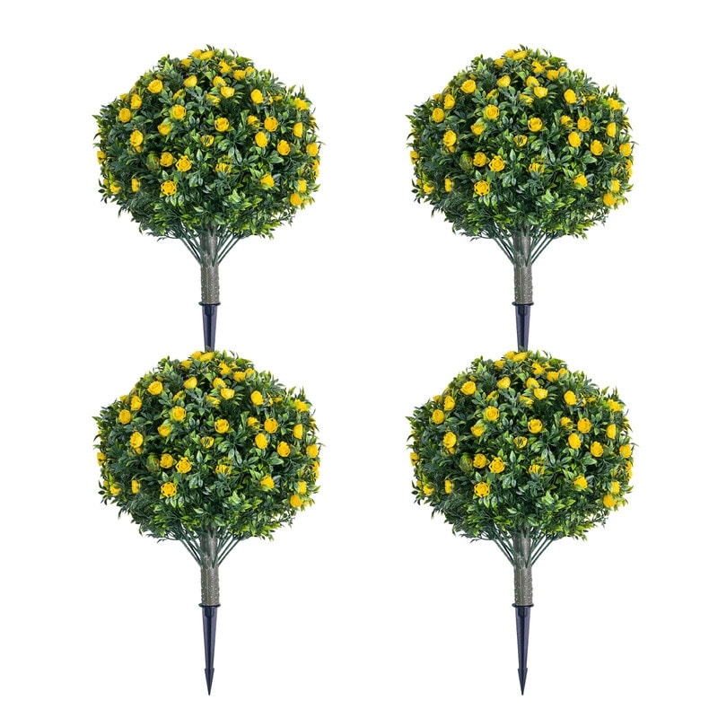 Artificial Topiary Ball Trees with Metal Stakes, UV Resistant Begonia