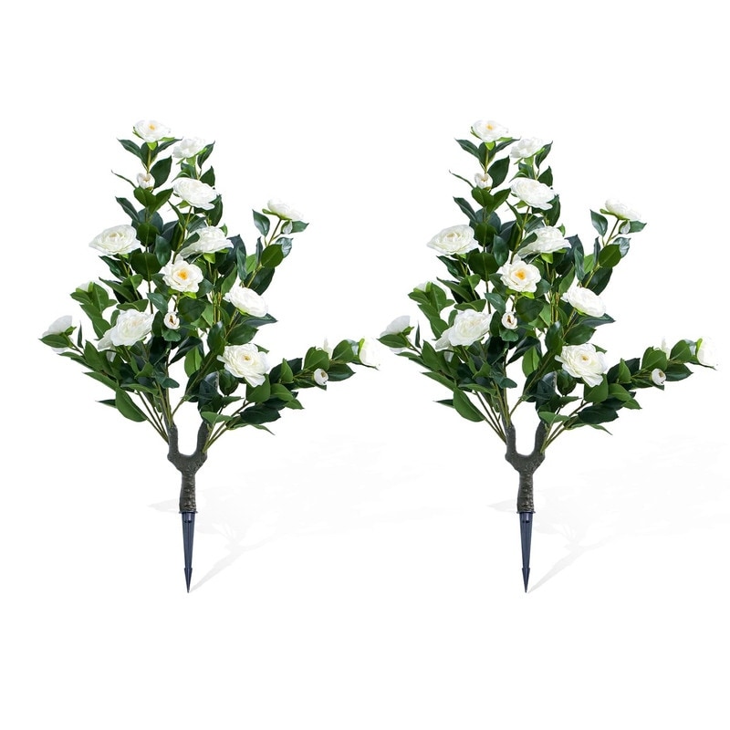 Set of 2 Mauve Ivory Artificial Vintage Cabbage Rose Flower Stem Bush Bouquet 17in - 17" L x 10" W x 10" DP