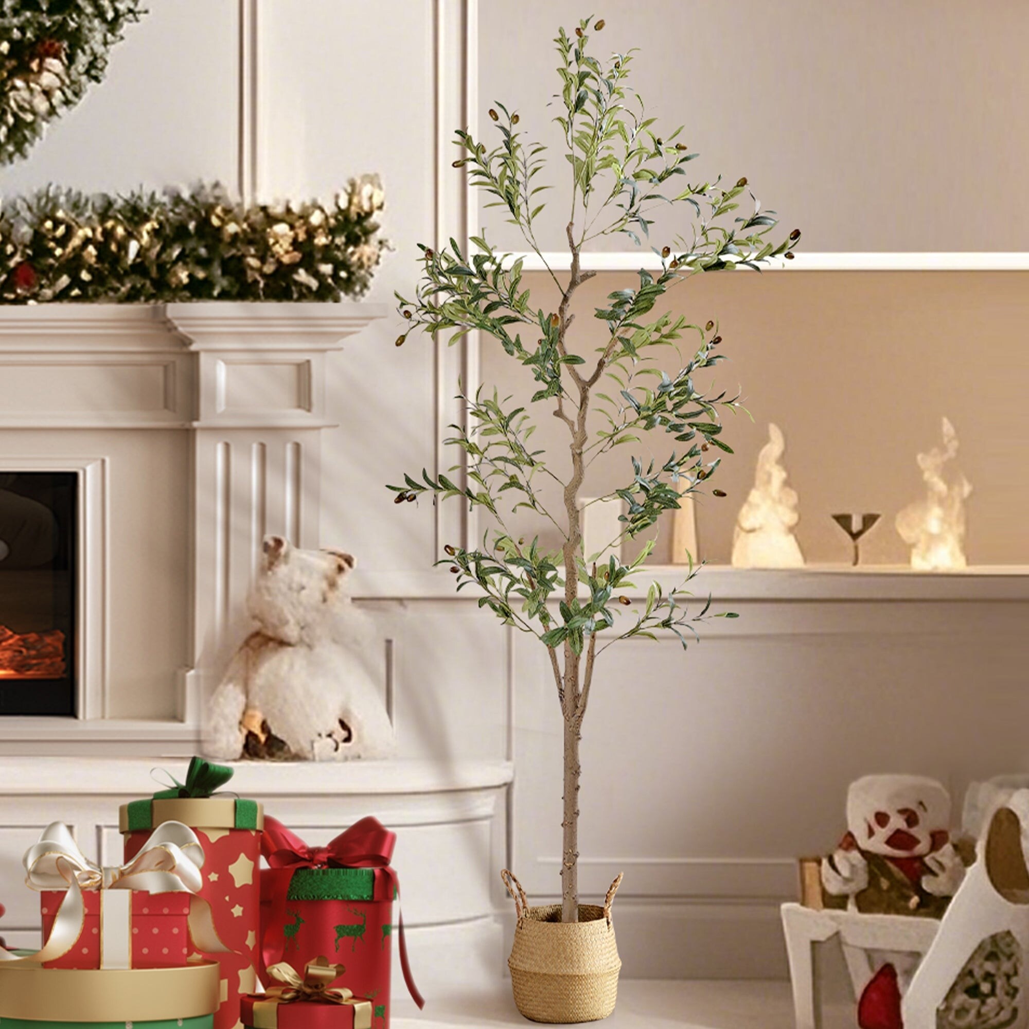 Artificial Olive Tree 59/71 Inch Tall Faux Silk Plant Indoor Fake Potted Tree with Wood Branches and Fruits