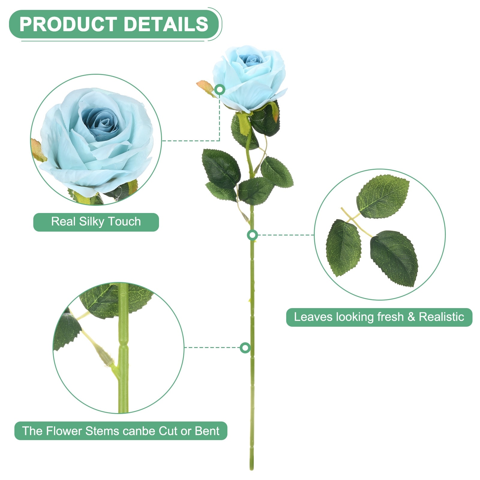 Rose Artificial Flowers with Long Stem for Home Decor - 20-Pack