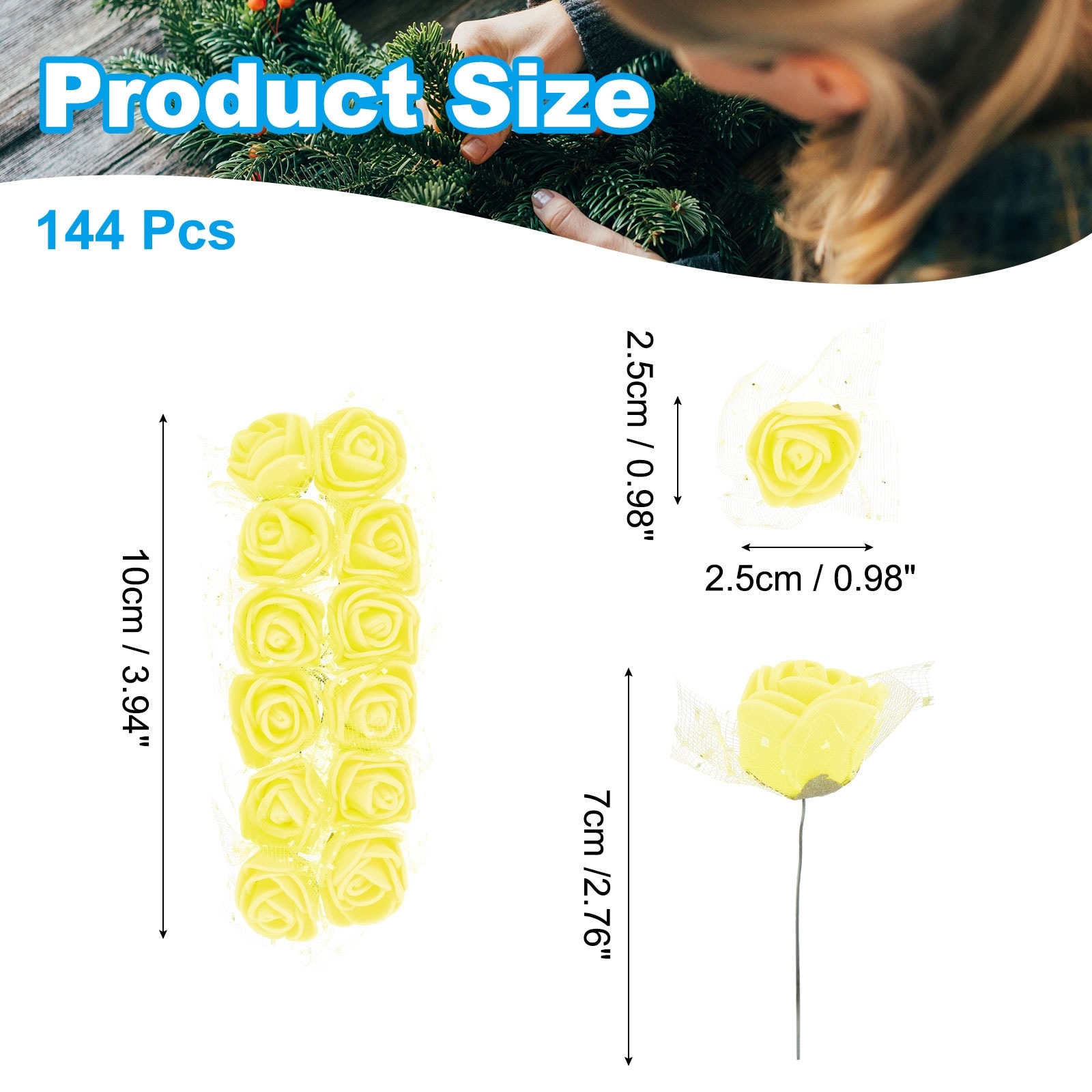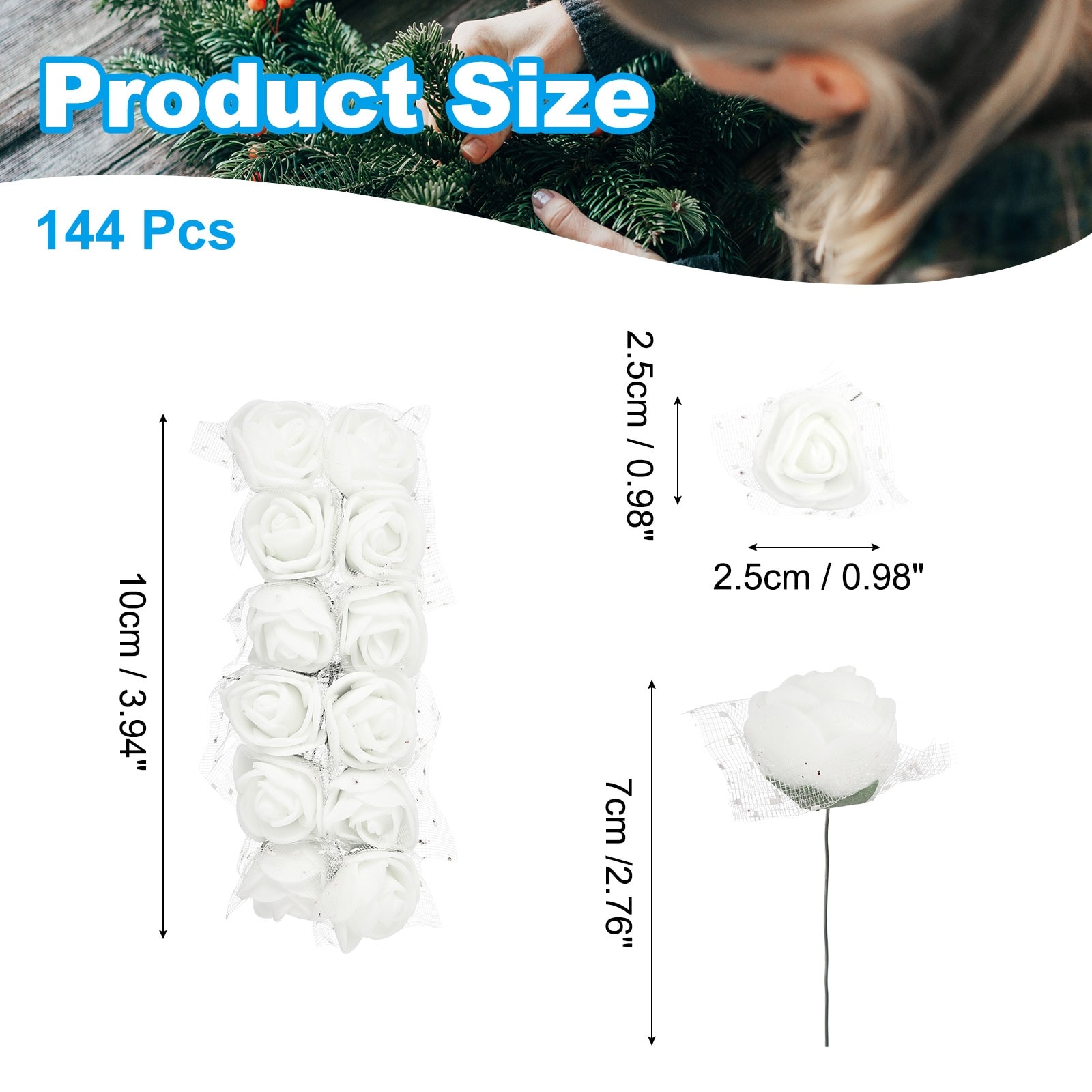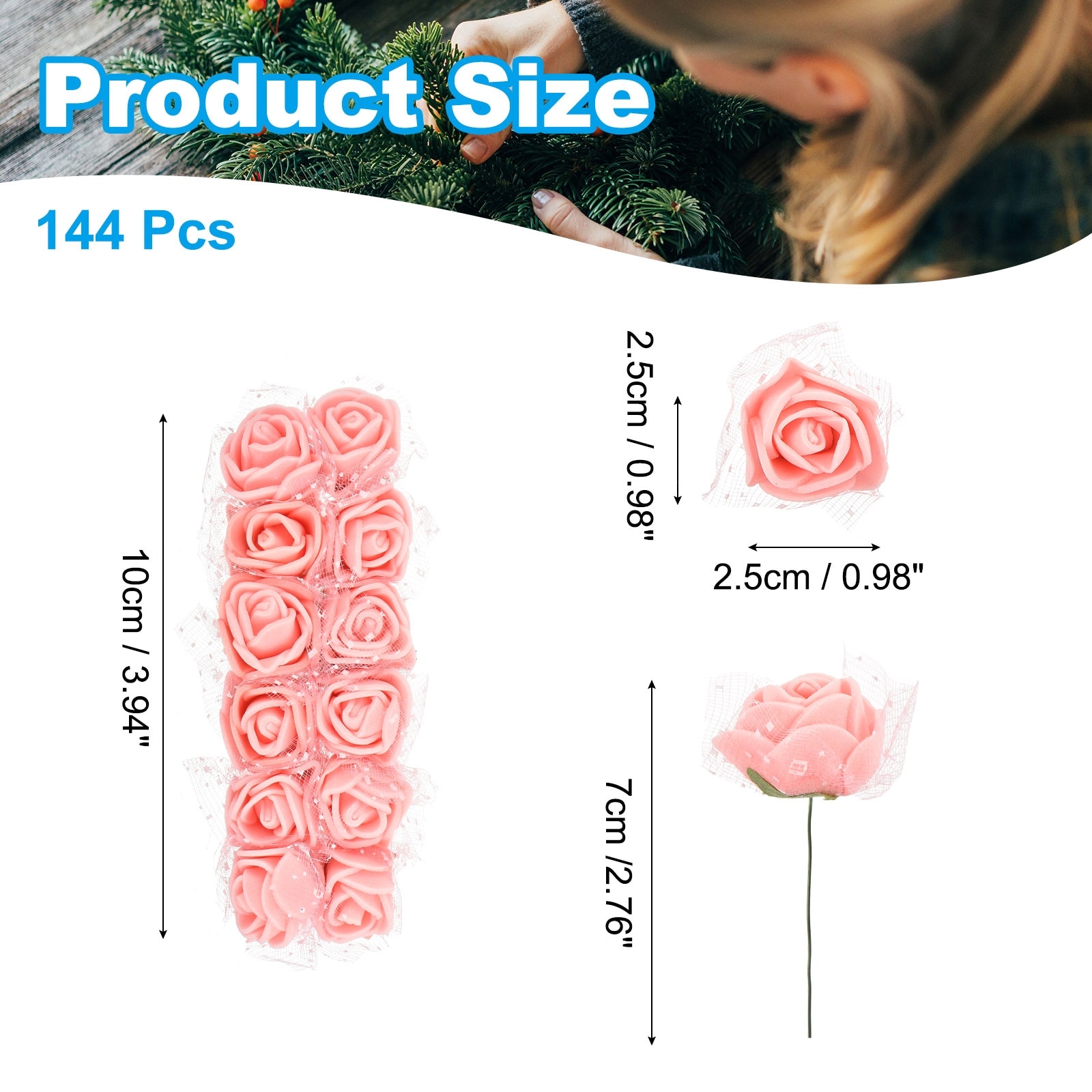 Mini Rose Artificial Flower Heads Bulk with Stem & Gauze - 144Pcs, 0.98"