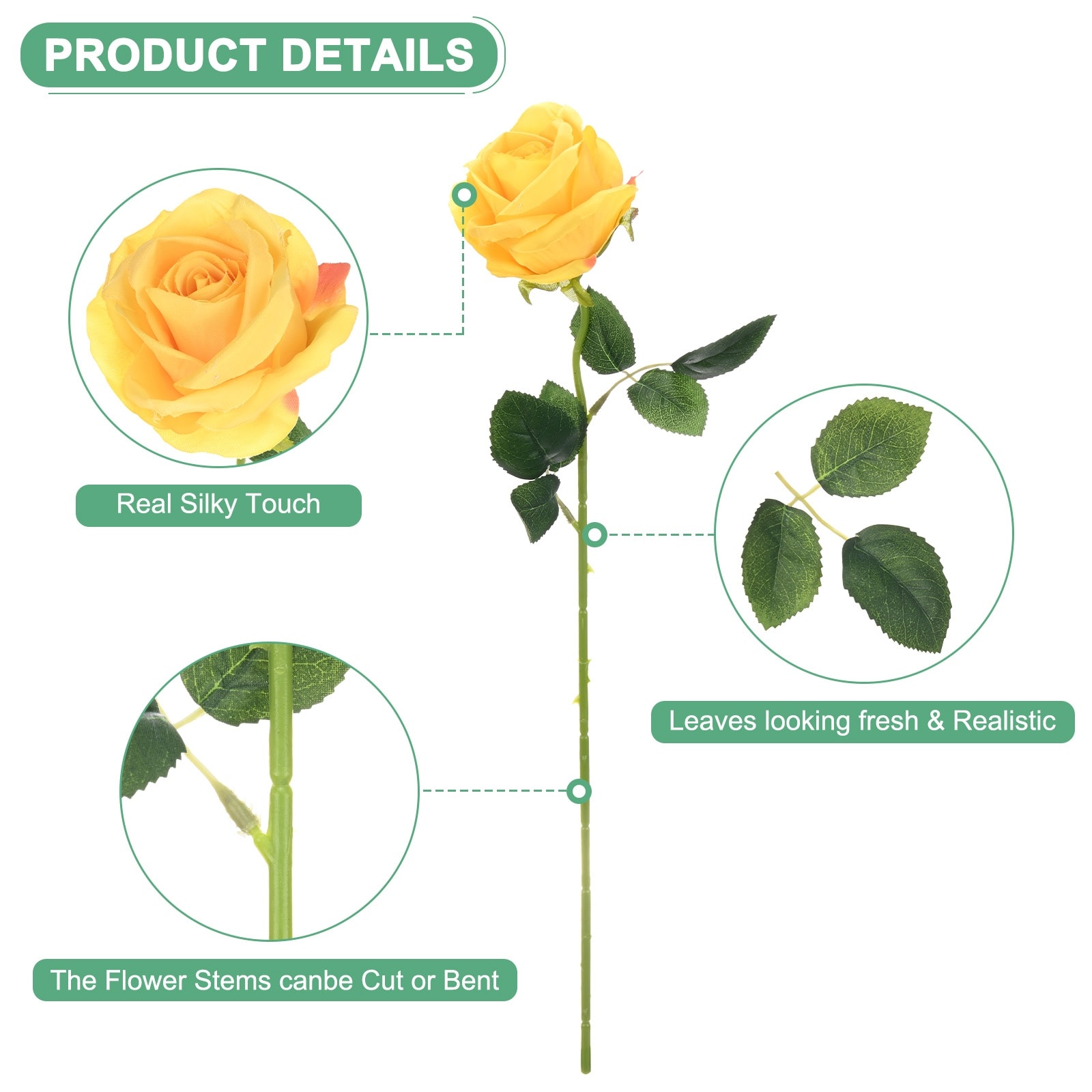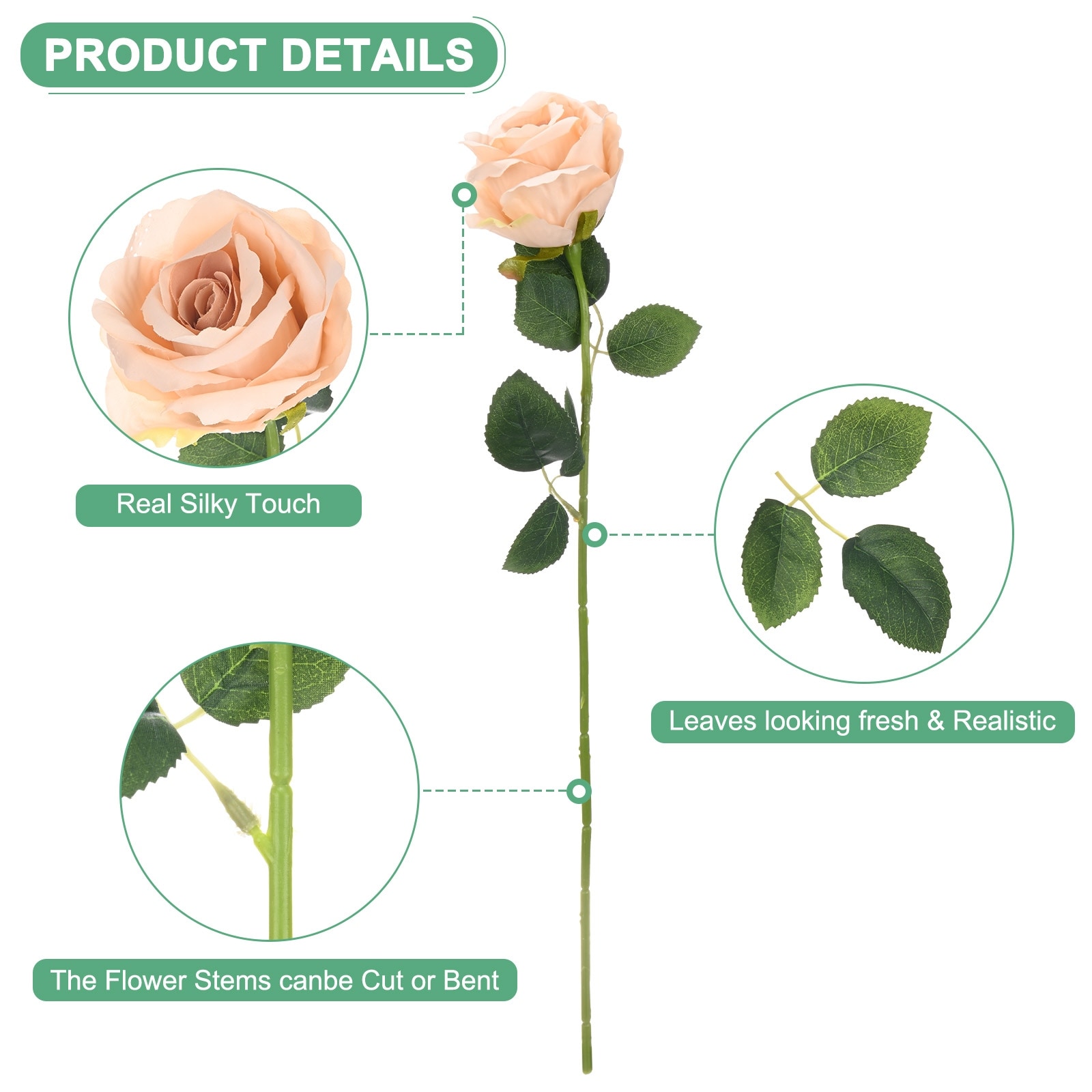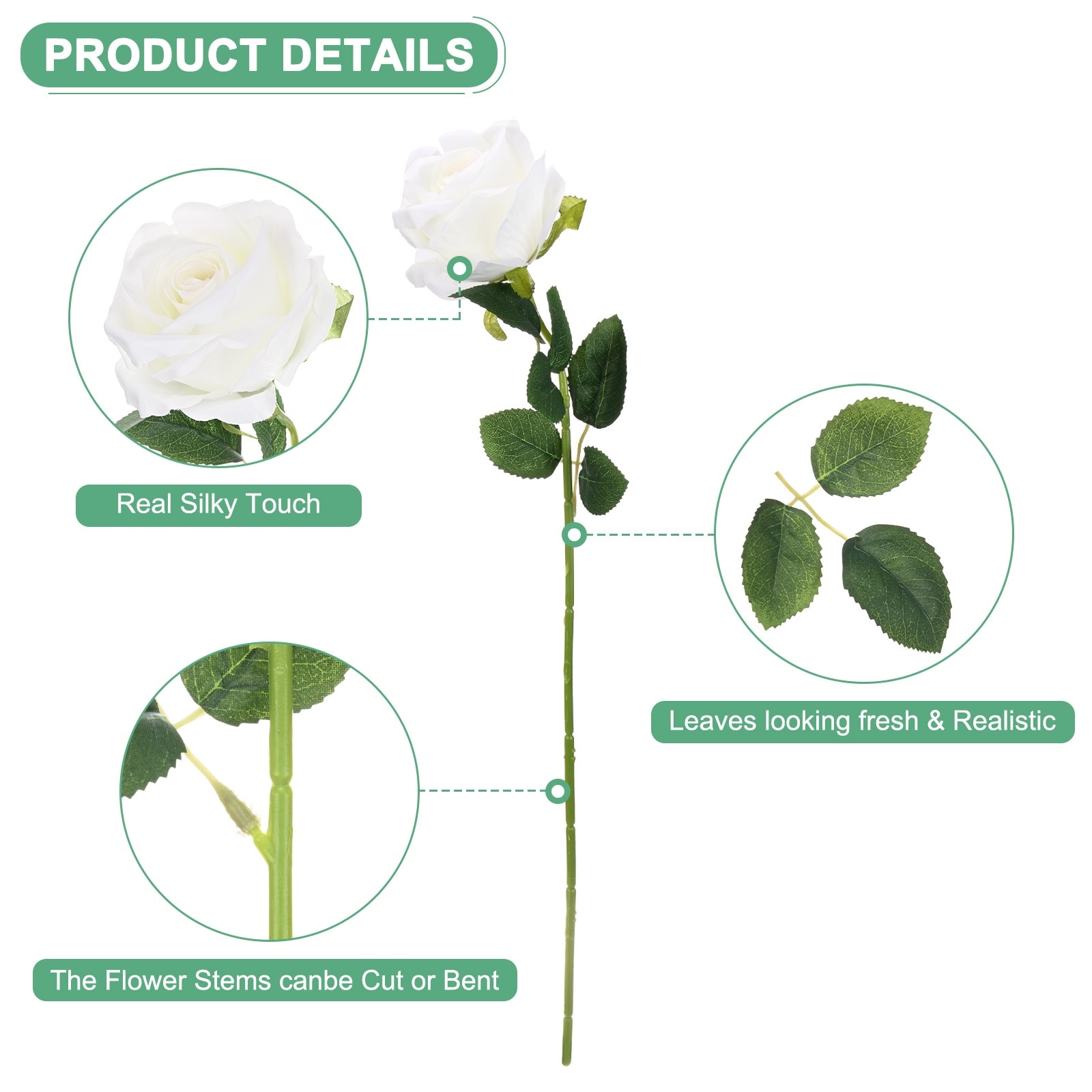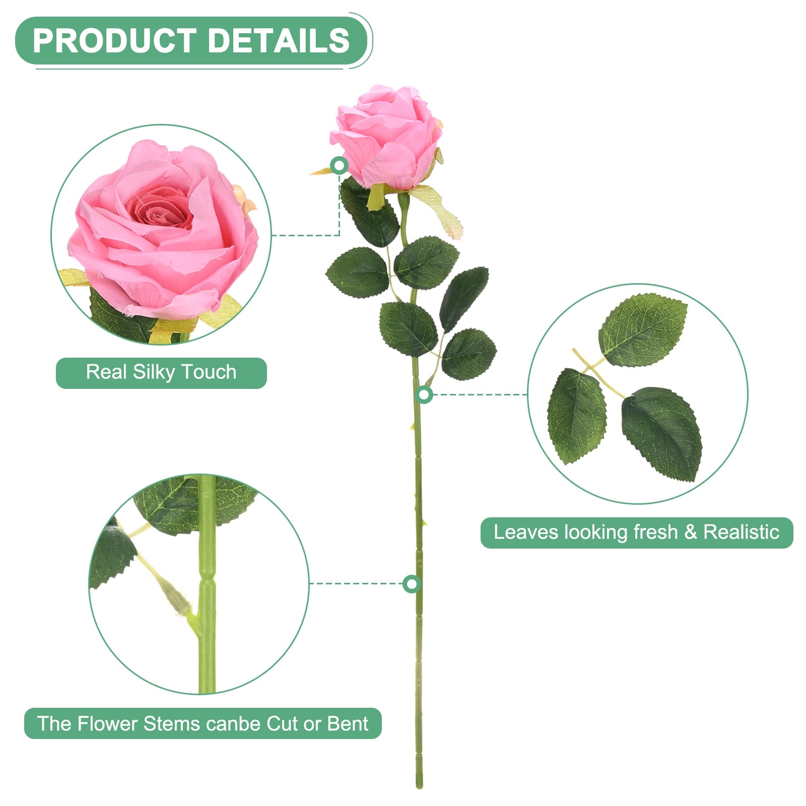 Rose Artificial Flowers with Long Stem for Home Decor - 20-Pack