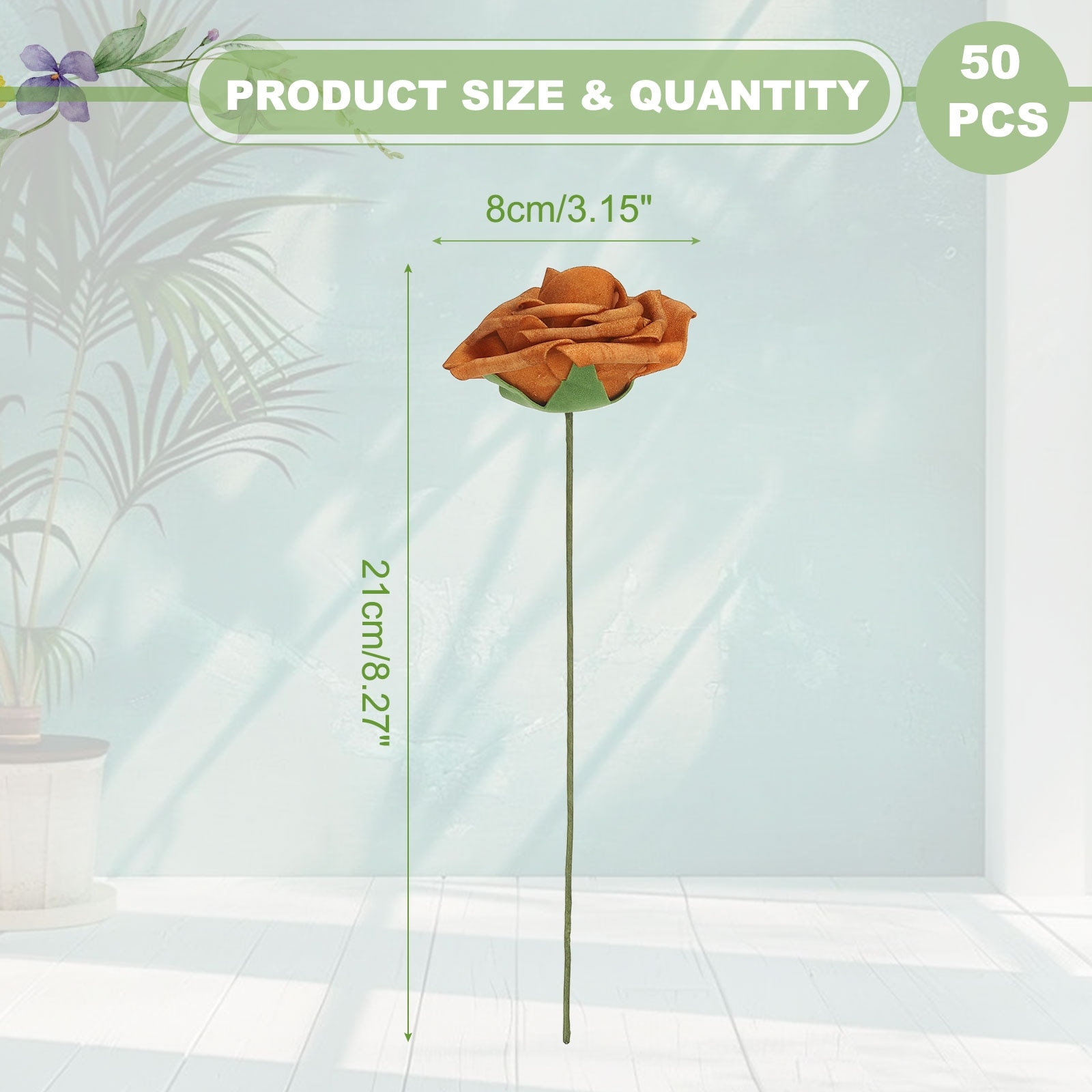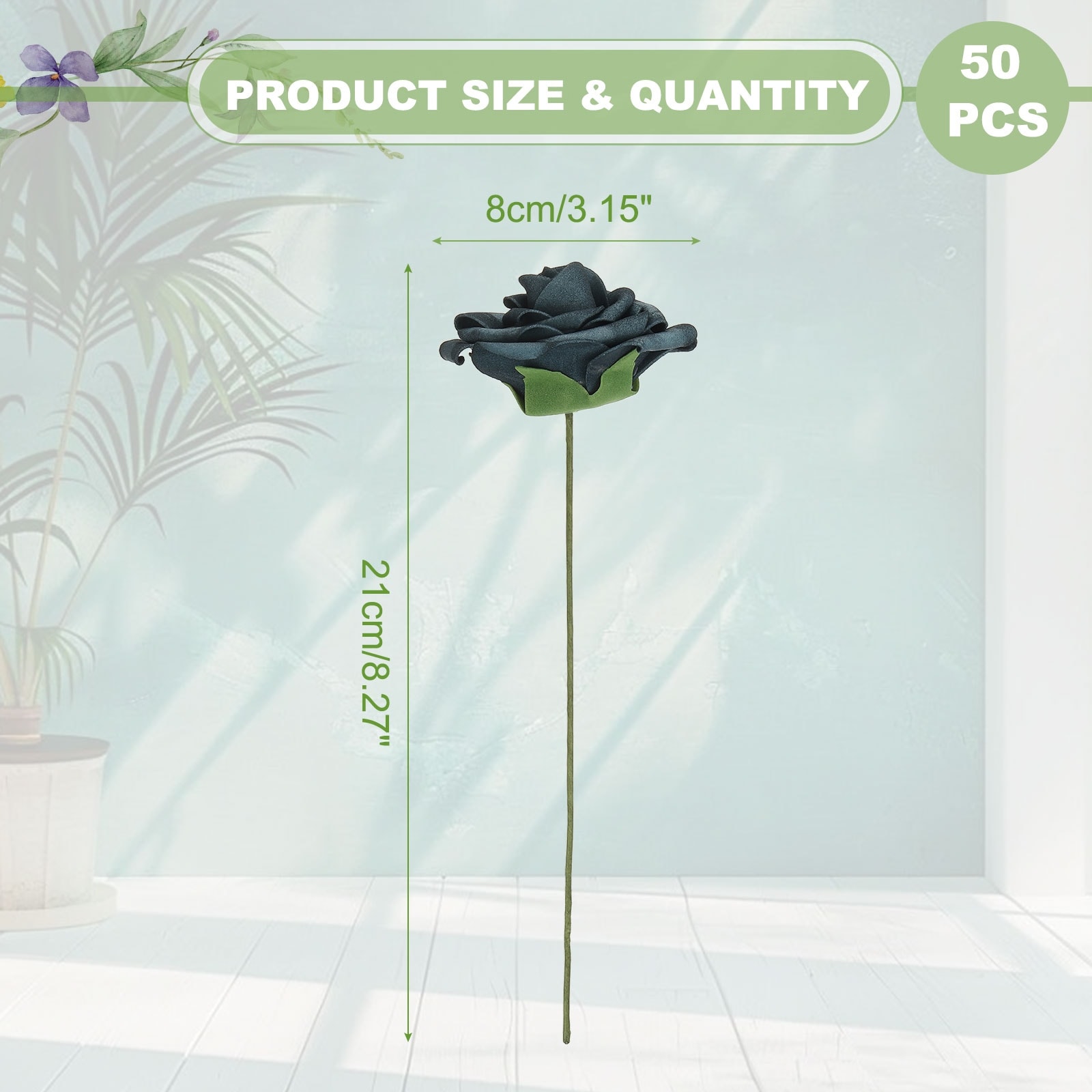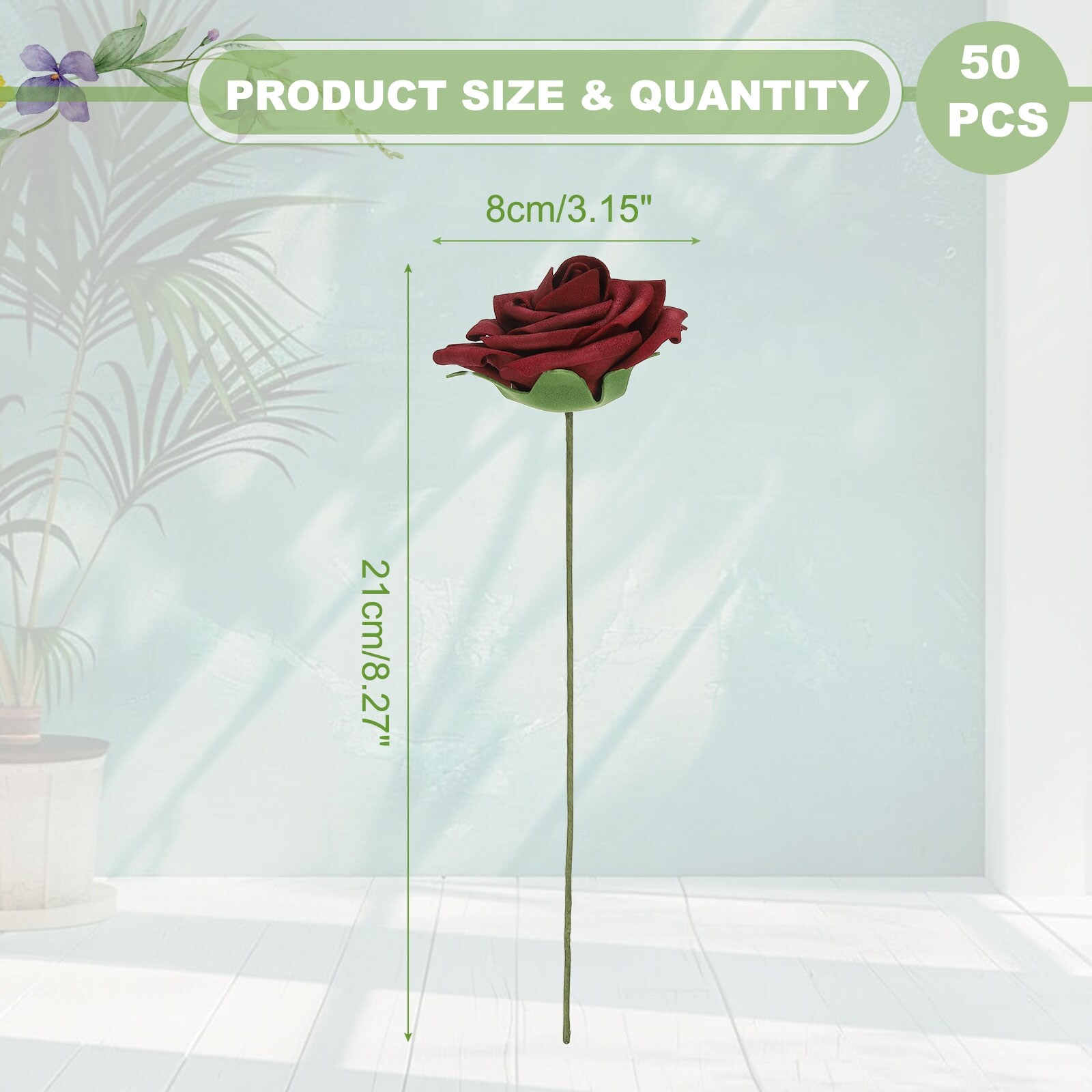 Fake Roses with Stems, Foam Roses Artificial Flowers for DIY Craft Wedding Bouquets and Party Decoration - 50Pcs, 3.15"