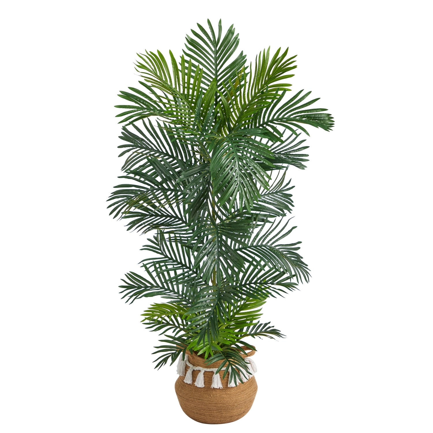 Artificial Palm Tree 5ft Indoor Outdoor - Rustic Boho Tree with Planter - Variegated Fronds - Home Decor - Green