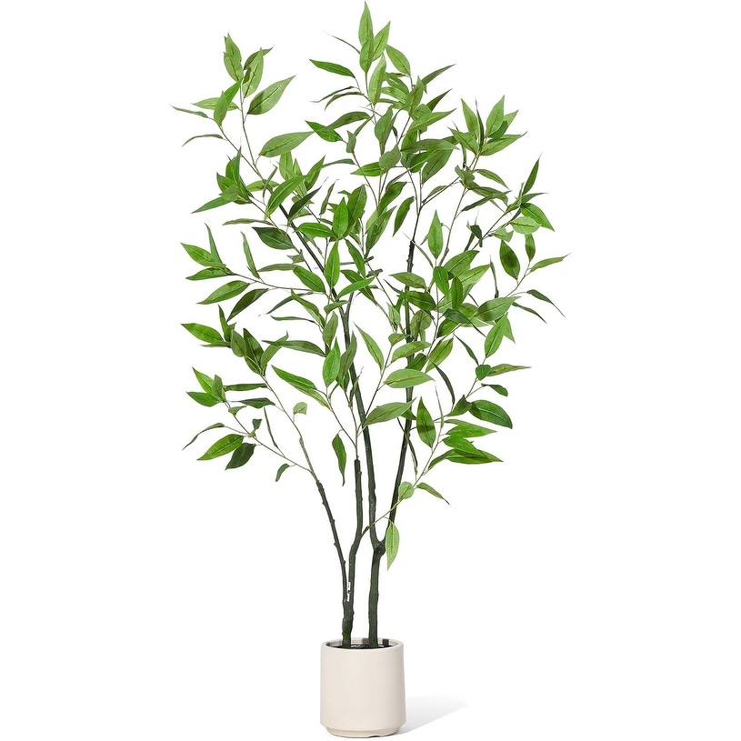 6 FT Artificial Eucalyptus Tree with Round Leaves,Realistic Fake Indoor Outdoor Plant in White Pot