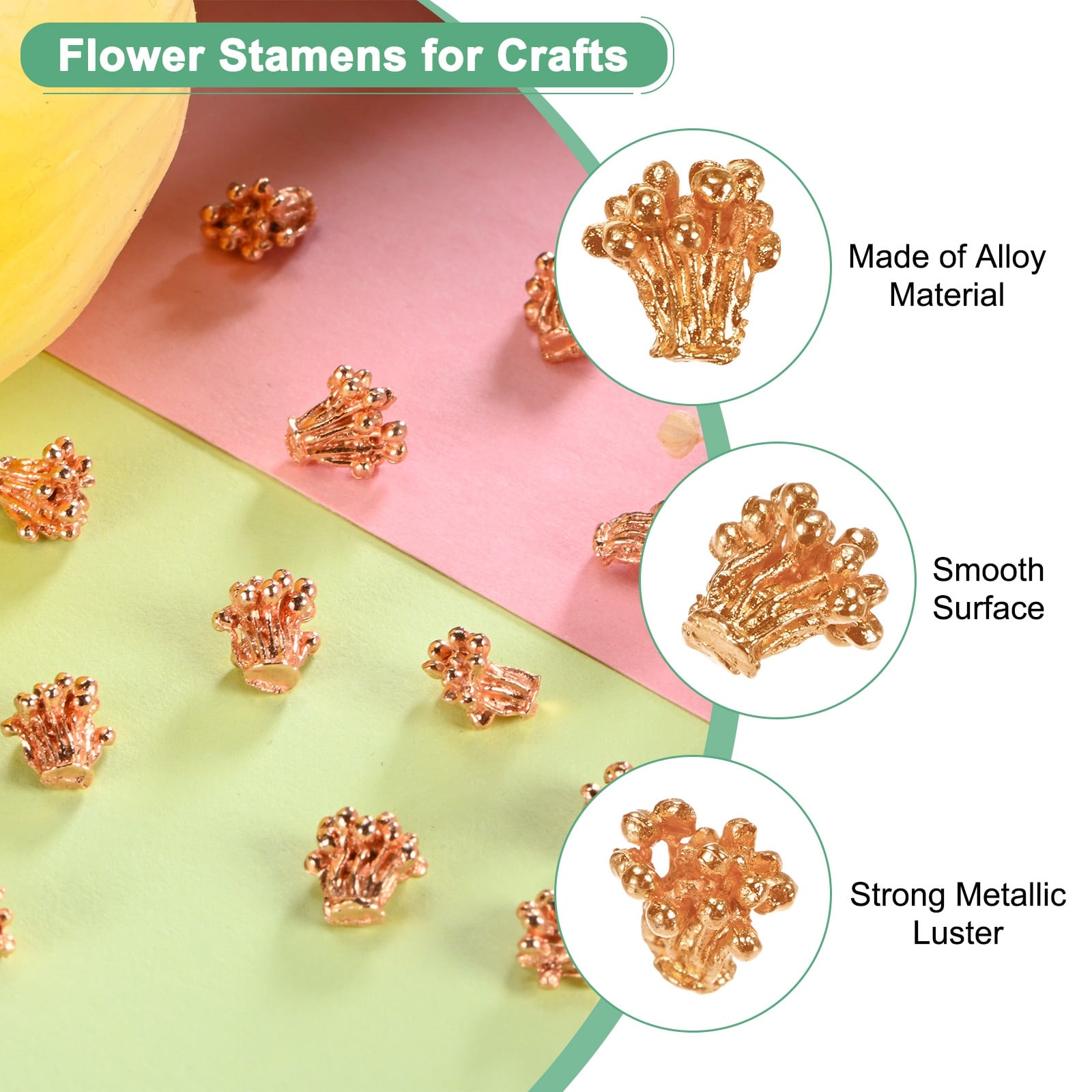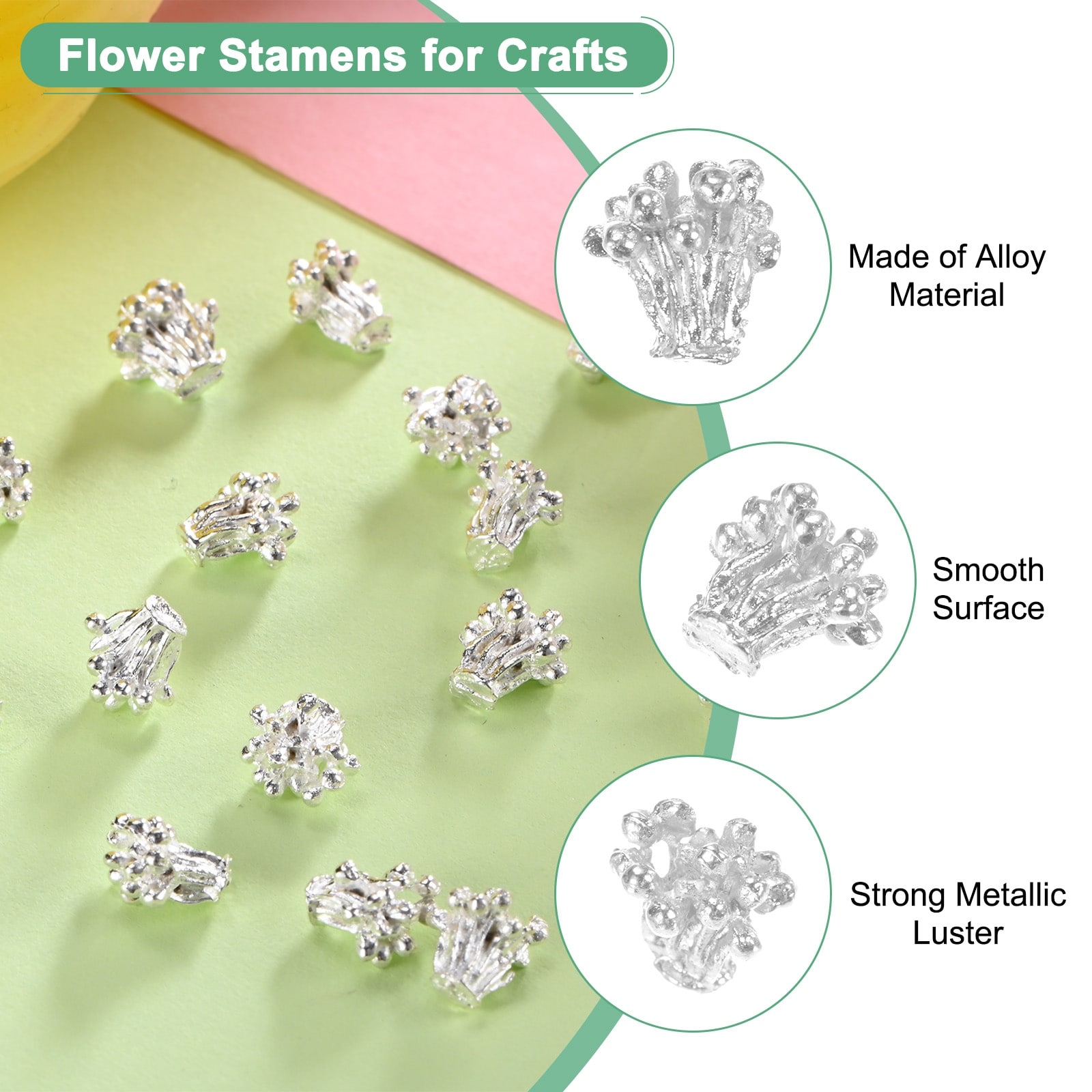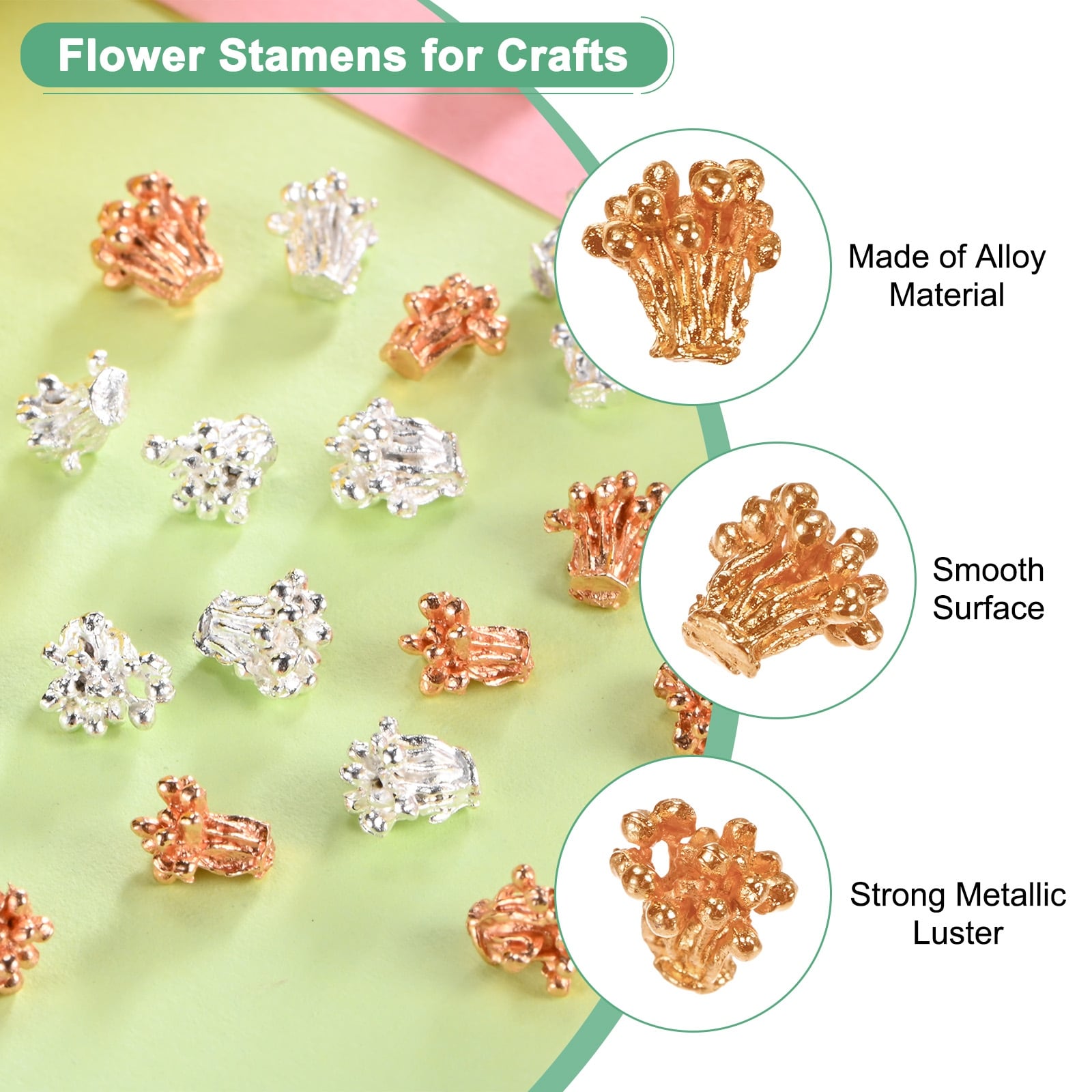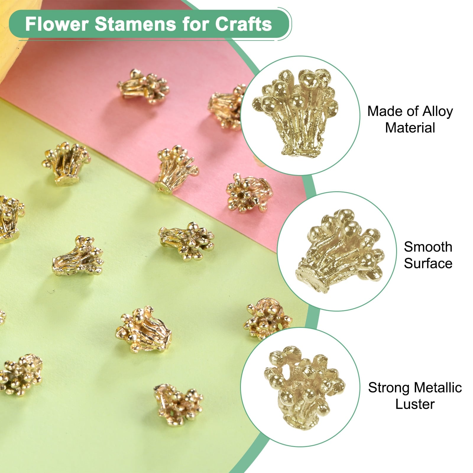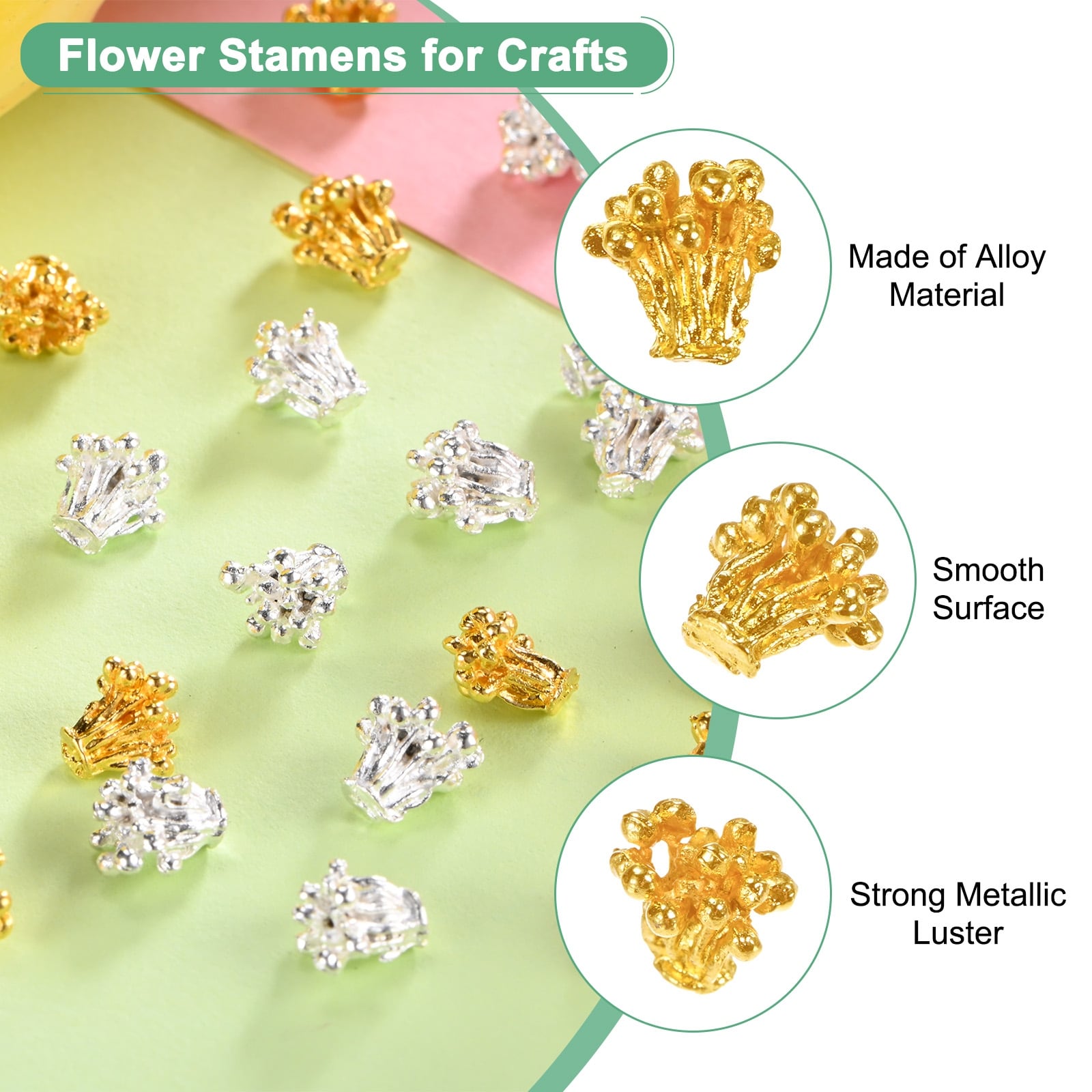 Flower Pistil Metal Alloy Flower Blossom Connectors Charm, Metal Material Bead Caps Accessory for Crafts - 100 Pcs