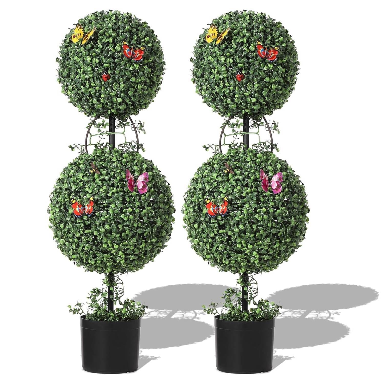 2 Pack 3 FT Artificial Double Ball Topiary Trees Plants - 3ft