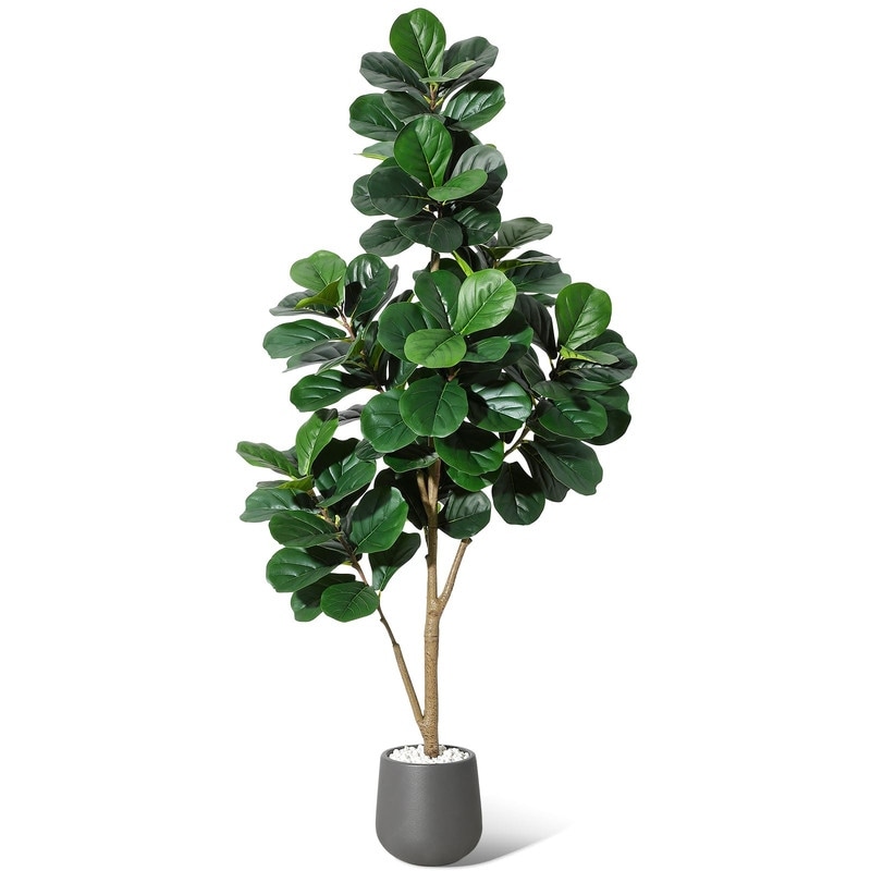 Fiddle Leaf Fig Tree, 77 Leaves, Ficus Lyrata, Modern Planter Pot