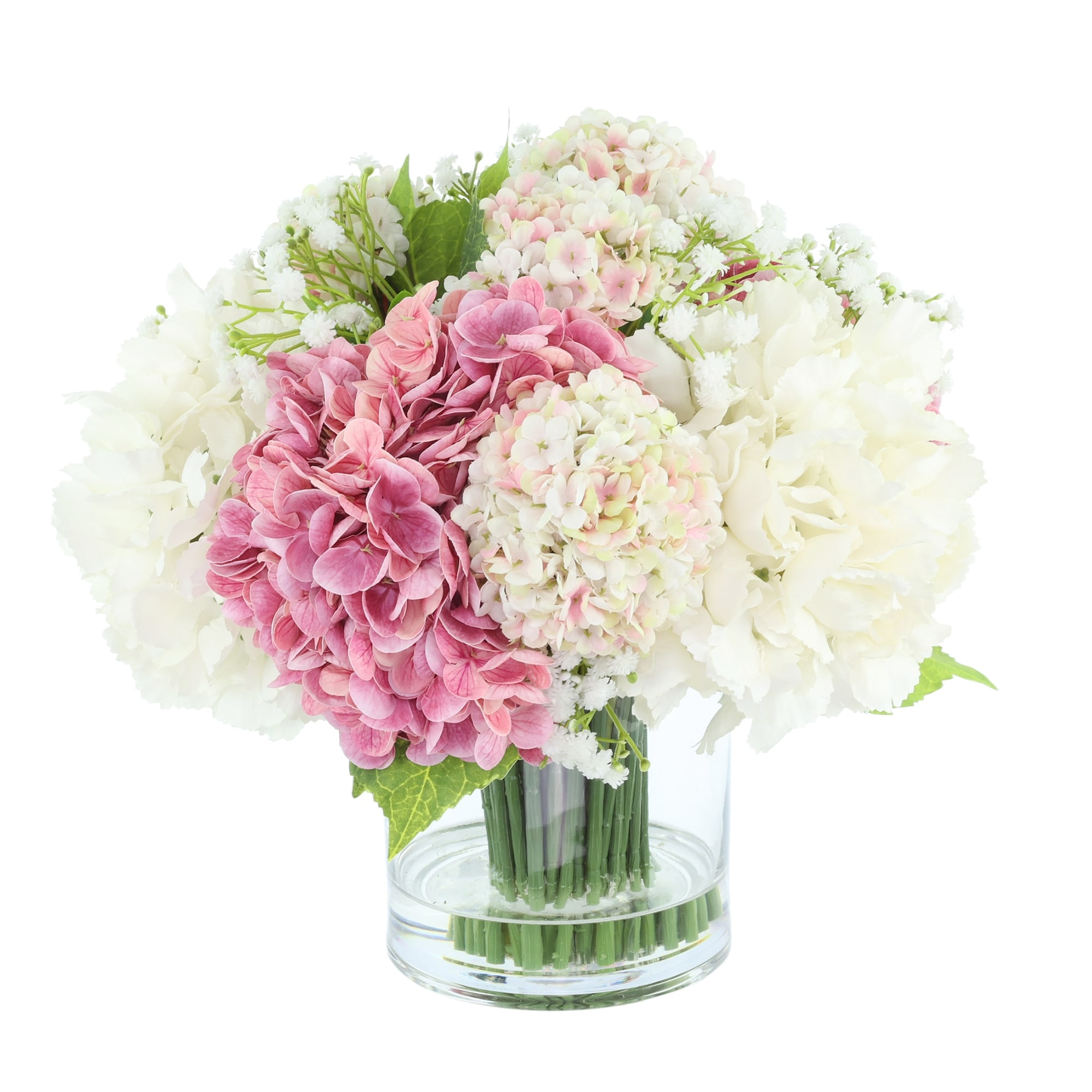 Classic Hydrangea and Viburnum Arrangement in Glass Vase