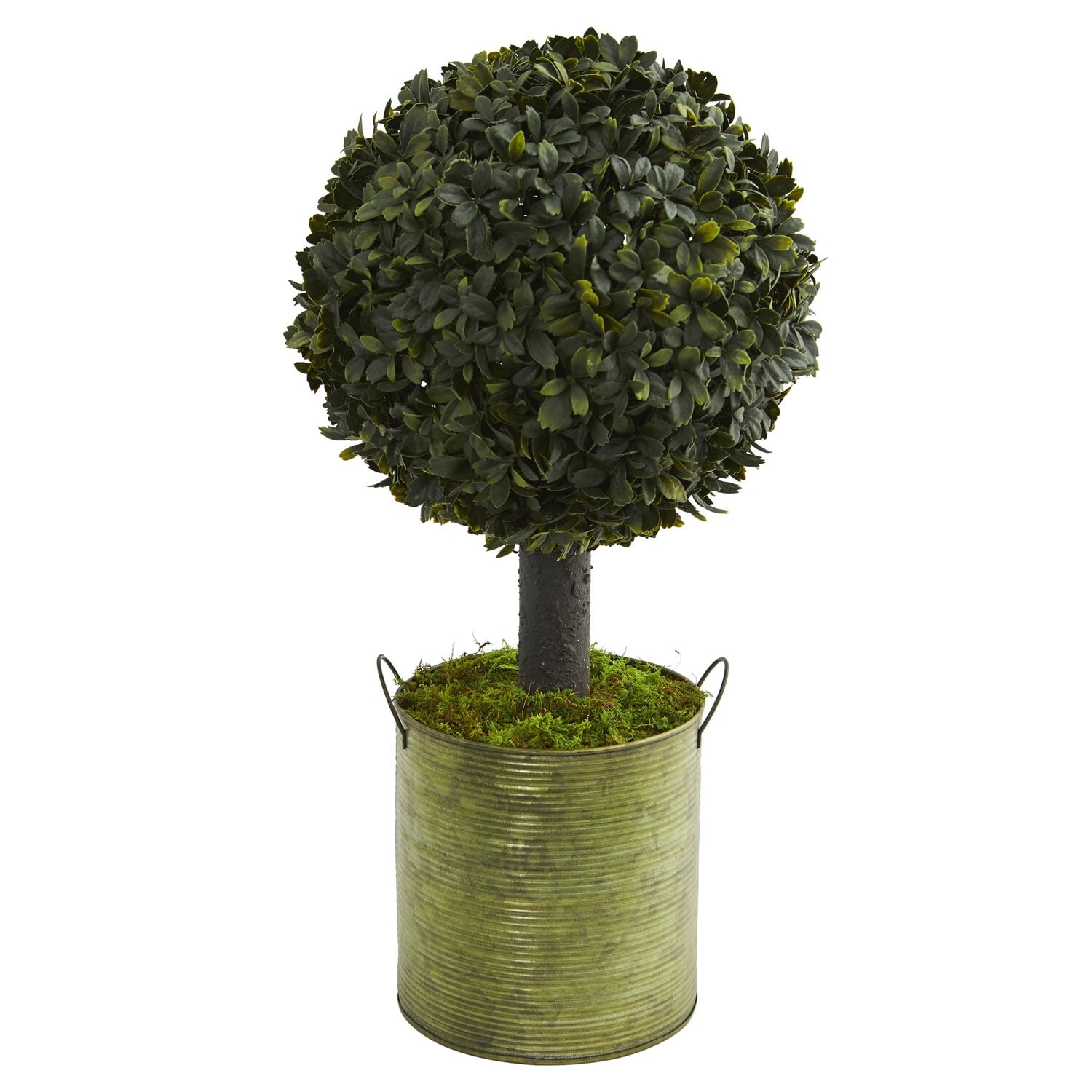1.5ft Boxwood Ball Topiary Artificial Tree in Green Tin with UV Resistant Spherical Green Foliage for Patio or Home