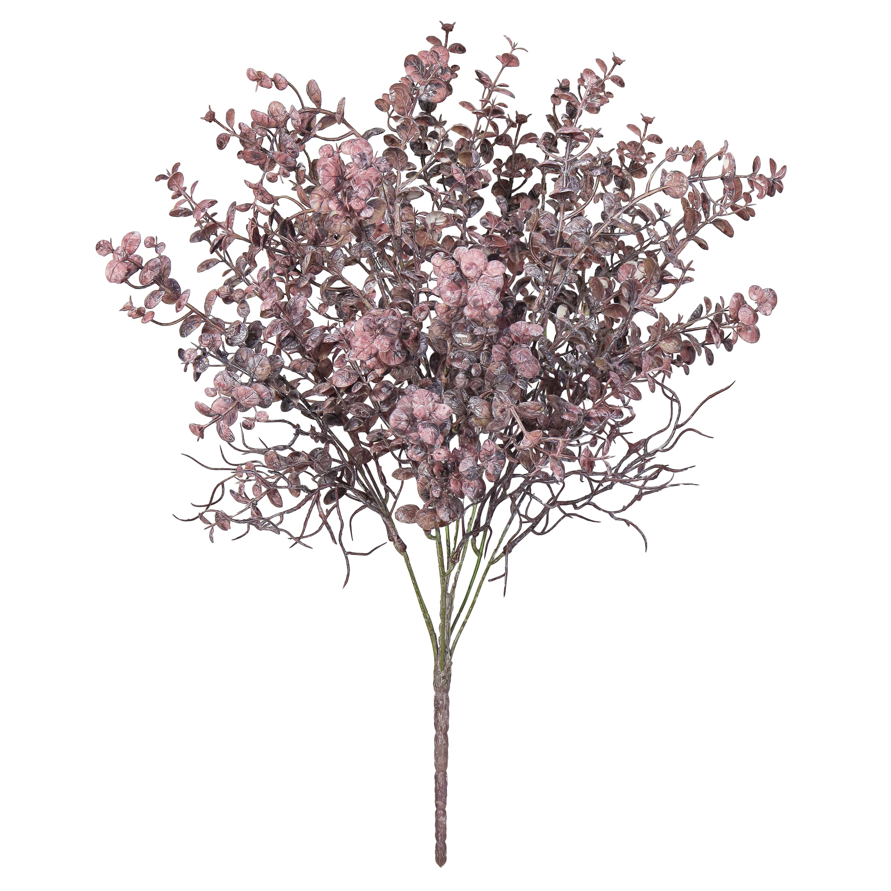Set of 2 Frosted Burgundy Artificial Boxwood Leaf Stem Plant Greenery Foliage Bush 21in - 21" L x 12" W x 12" DP