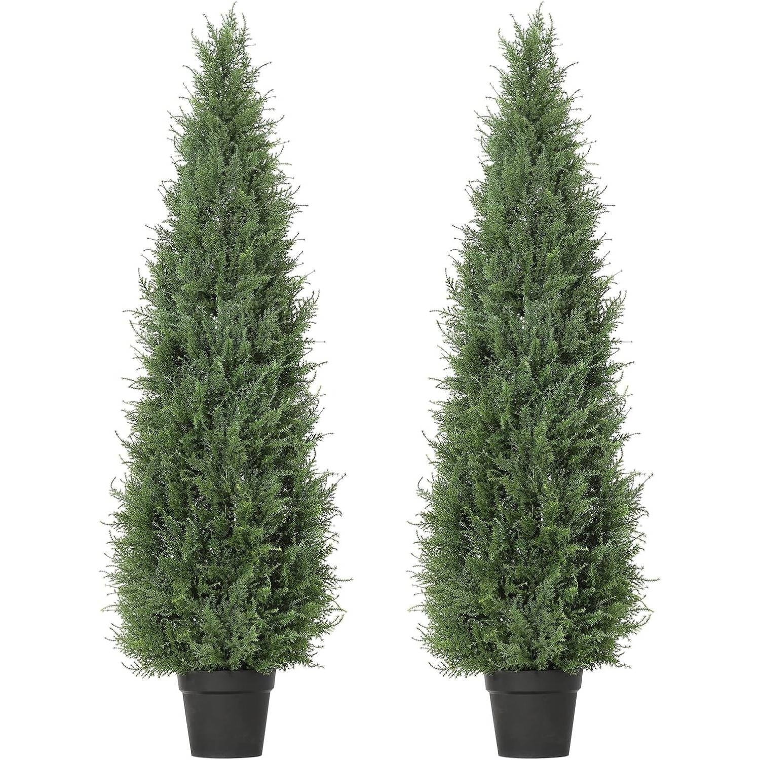 2-Pack Faux Artificial Cedar Topiary Tree for Home Office Decor