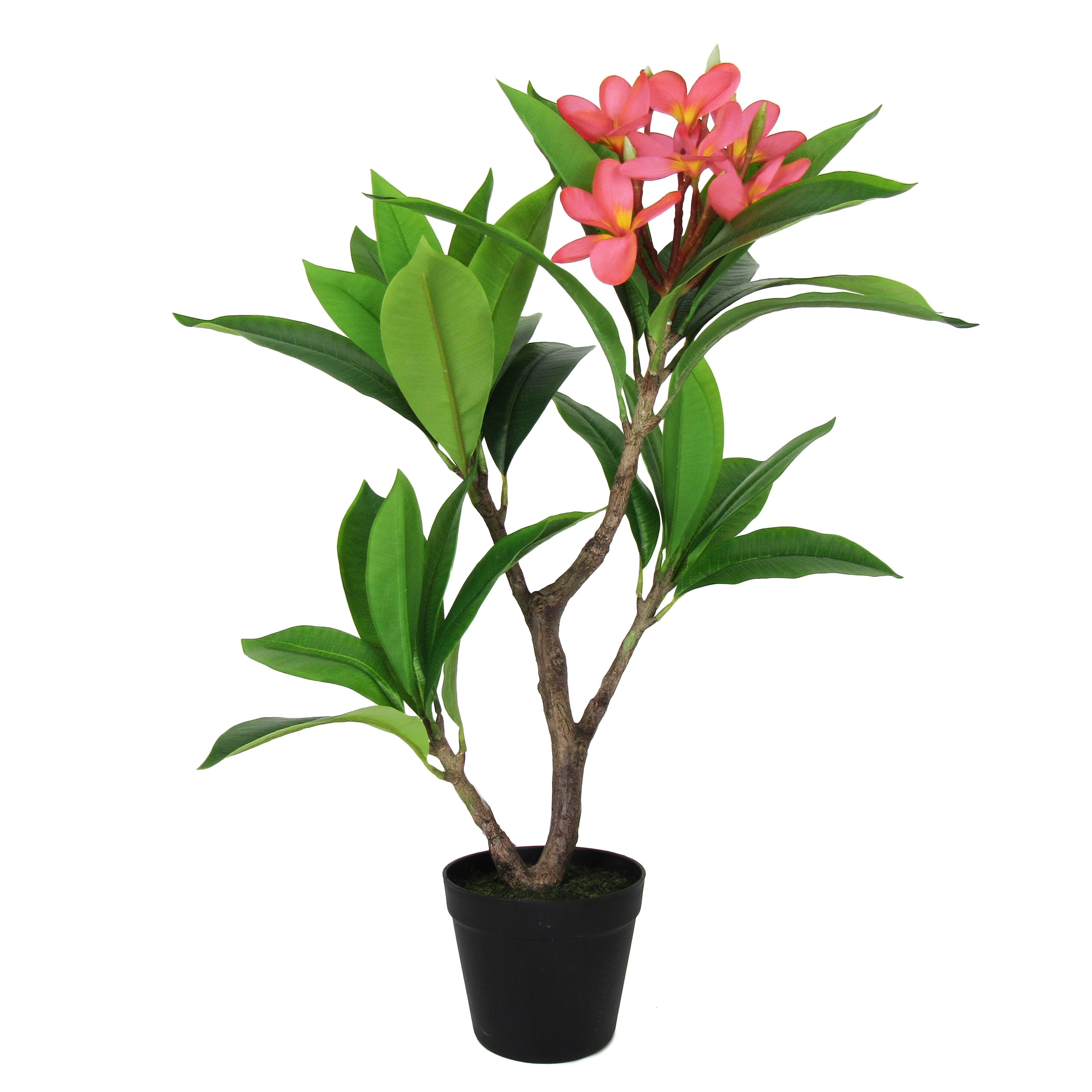 2.25ft Fuchsia Artificial Plumeria Flower Tree Tropical Plant in Black Pot - 27" H x 20" W x 17" DP