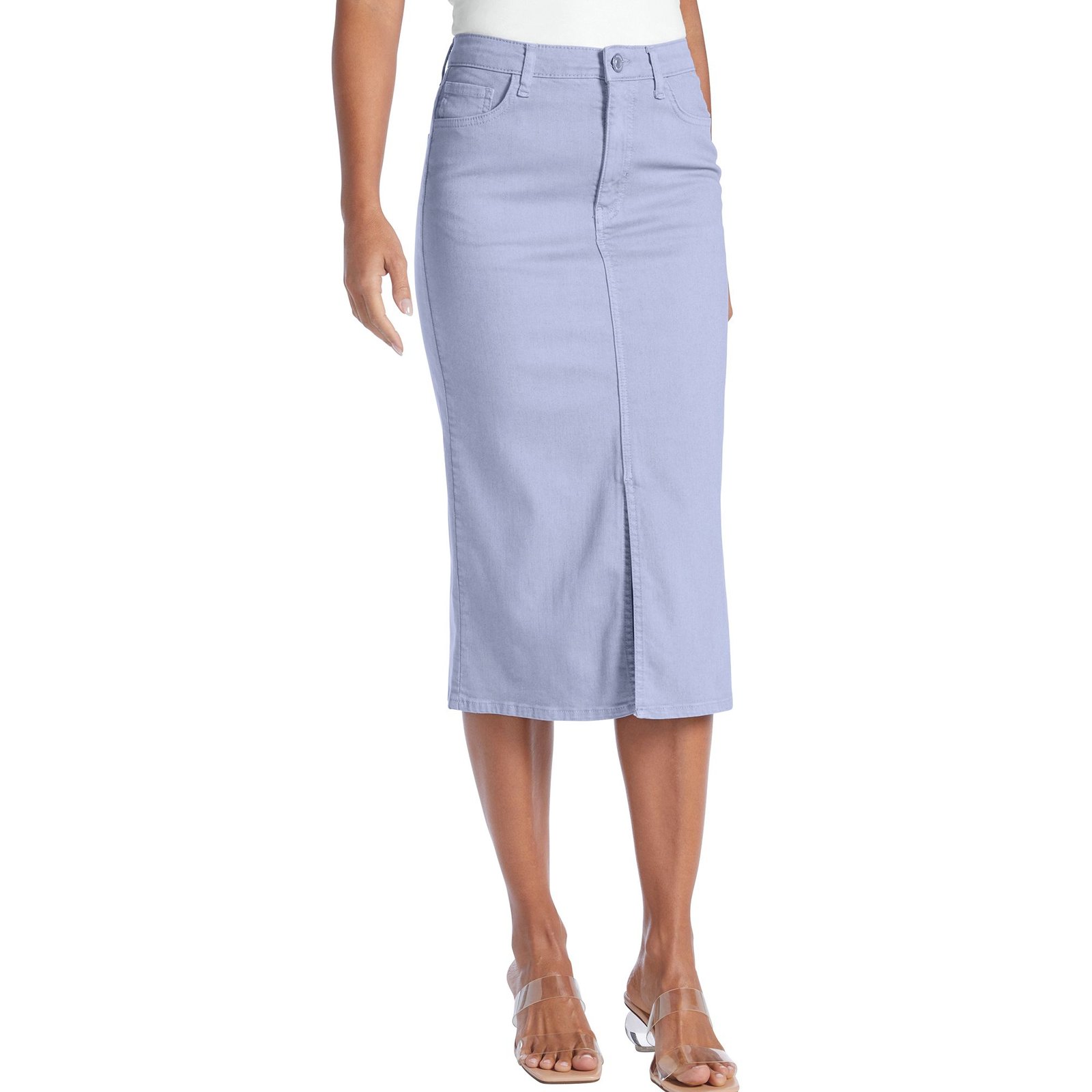 Masseys Midi Denim Skirt (Size 22W) Bright Periwinkle, Cotton,Polyester,Spandex