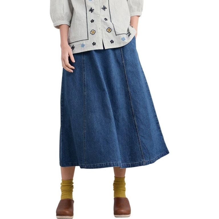Restharrow Cotton & Linen A-Line Denim Skirt - Blue - Seasalt Cornwall Skirts