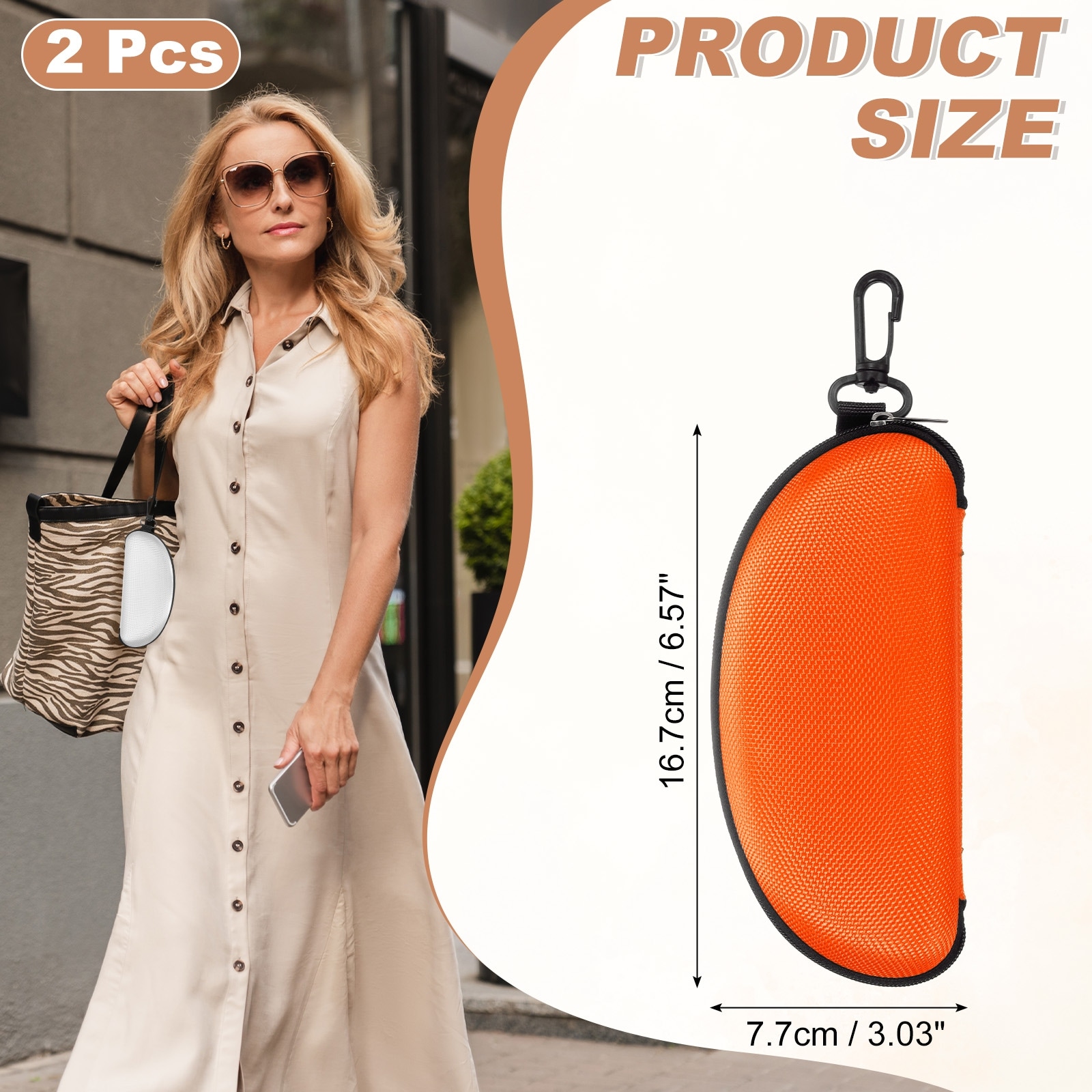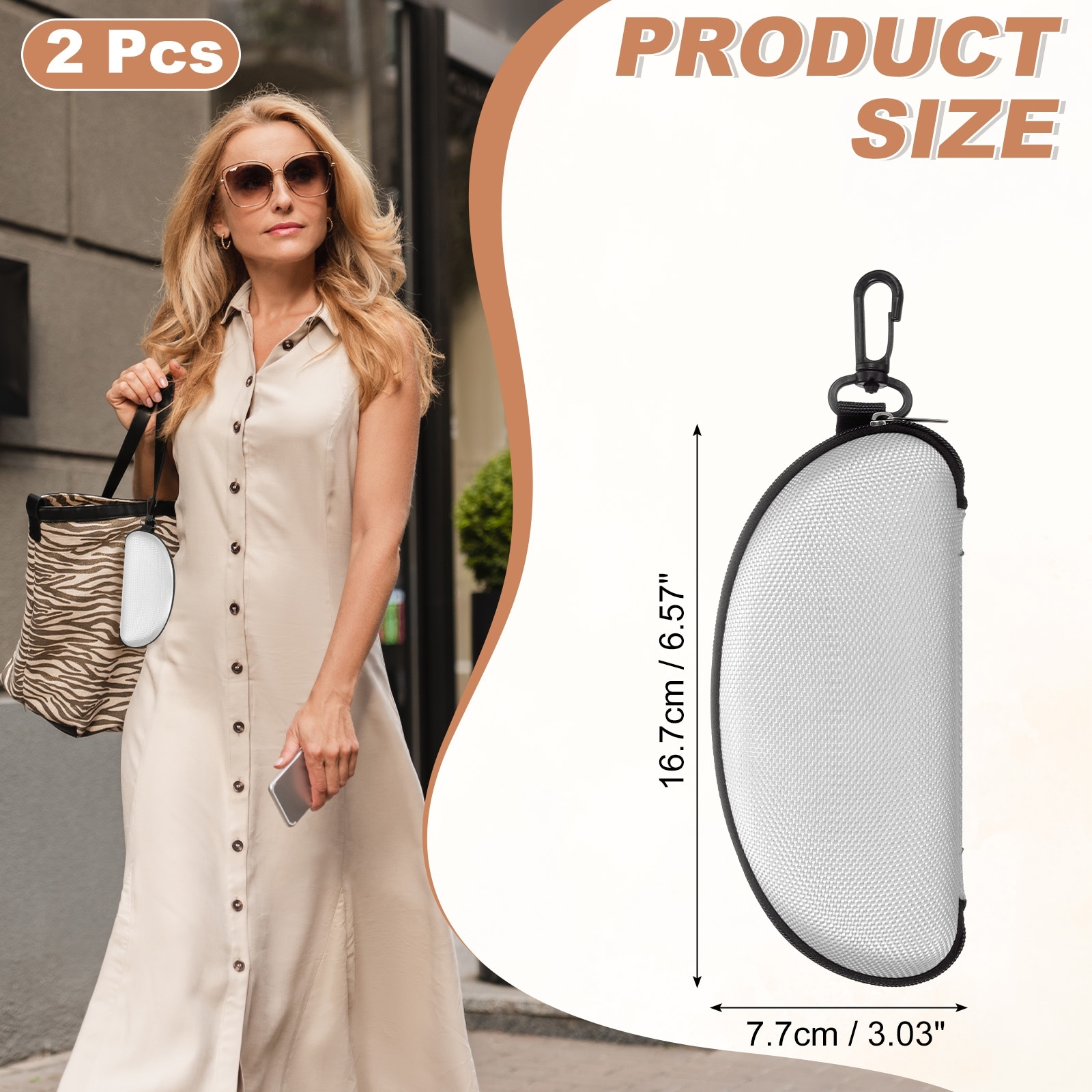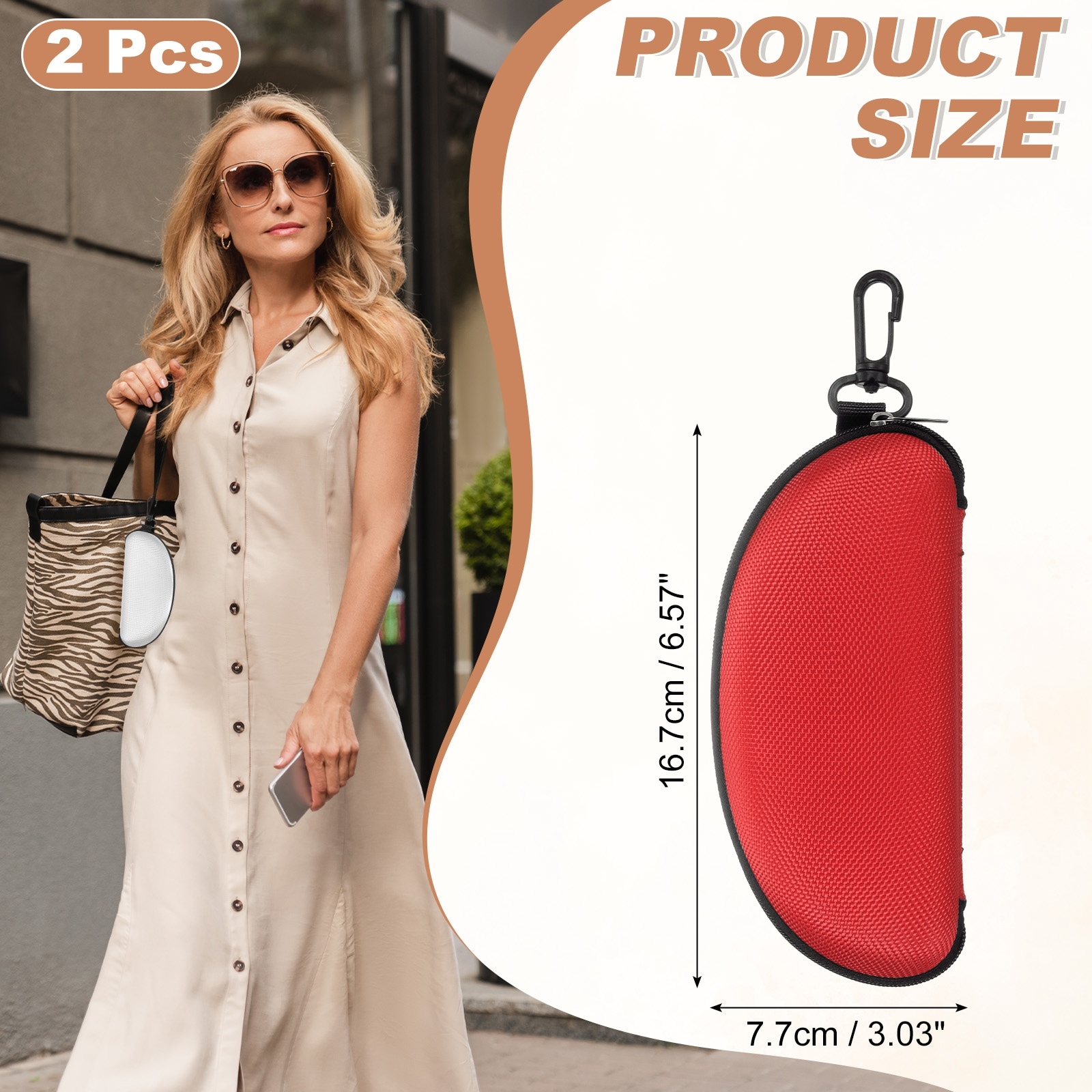 Sunglasses Soft Case, Zipper Eyeglass Case, Portable Hard Shell Sunglasses Holder with Metal Hook for Sport - Medium