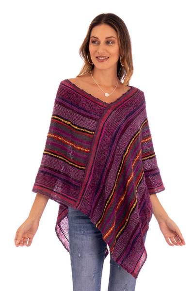 Sierra Twilight,'Purple and Plum Baby Alpaca Blend Plum Poncho from Peru'