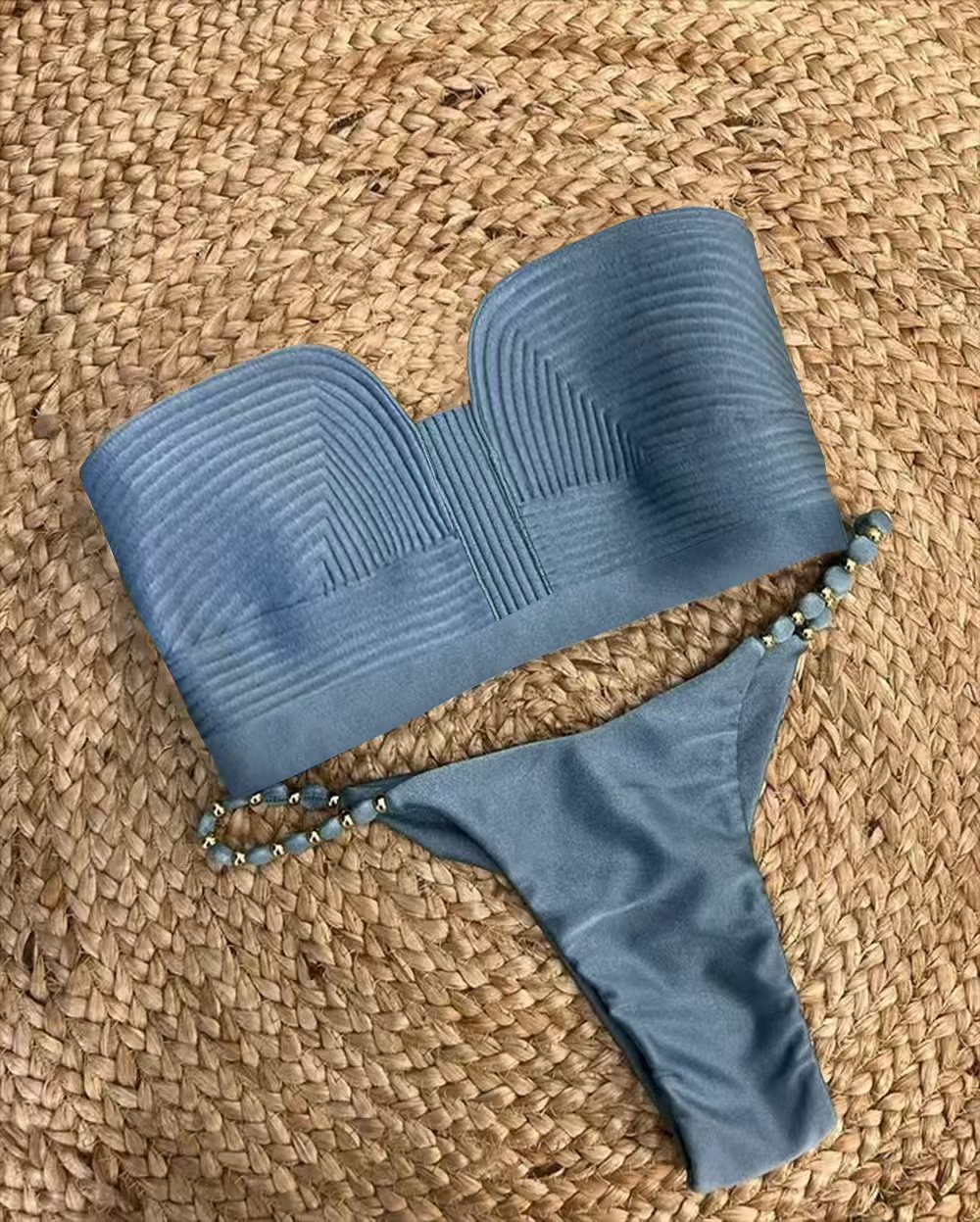 Bandeau Bikini Push Up Women Swimsuits, Sexy Brazilian Bikini Set, Thong Biquini Swimwear, Solid Beachwear For Women l