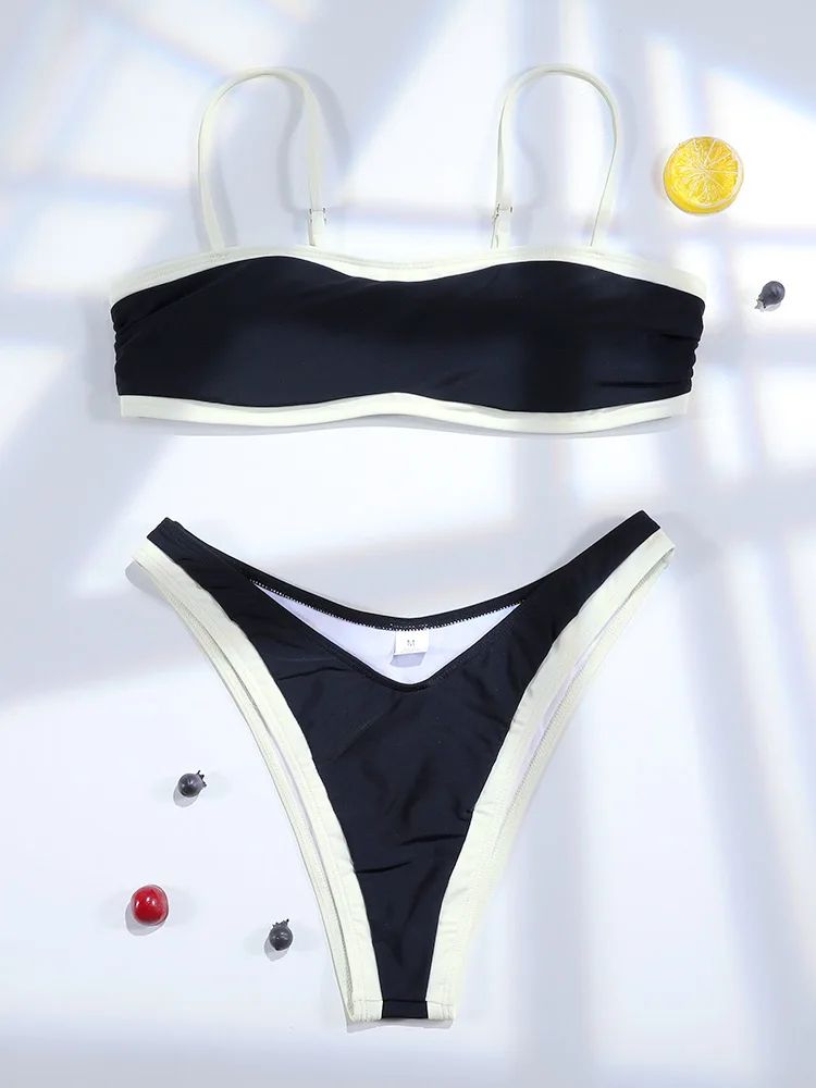 Sexy Swimsuit Pit Stripe Bikini, Women Swimwear Bathing Suits, Push Up Biquinis, Bandage Beachwear Solid Sets black s