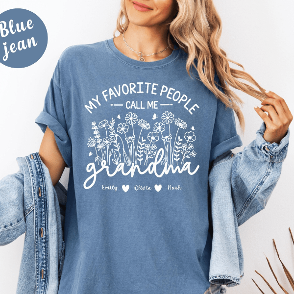 Custom Grandma Shirt With Names Wildflowers Comfort Colors Gift Tee red l sweatshirt