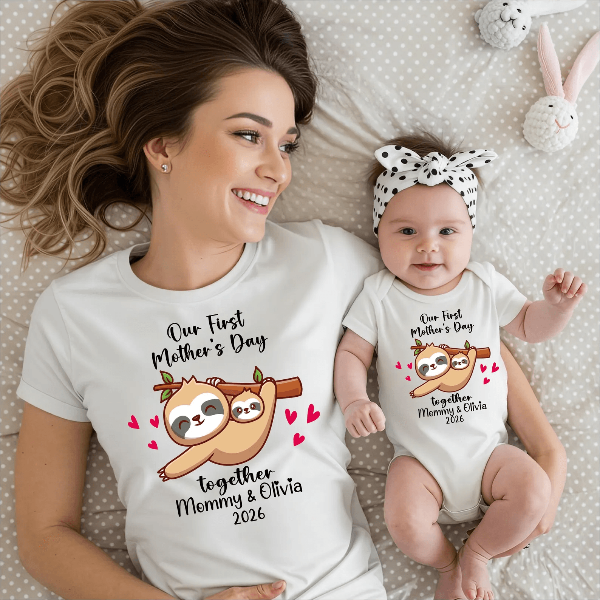 First Mothers Day Matching Tee Personalized Mom & Baby black s t Shirt