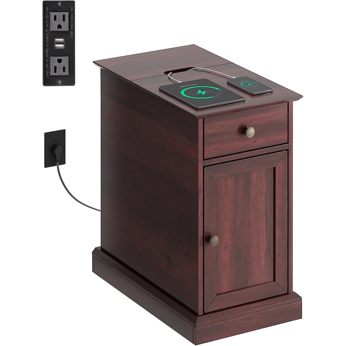Vintage Farmhouse Nightstand with Charging Station, Spacious Storage, and Hidden Outlets