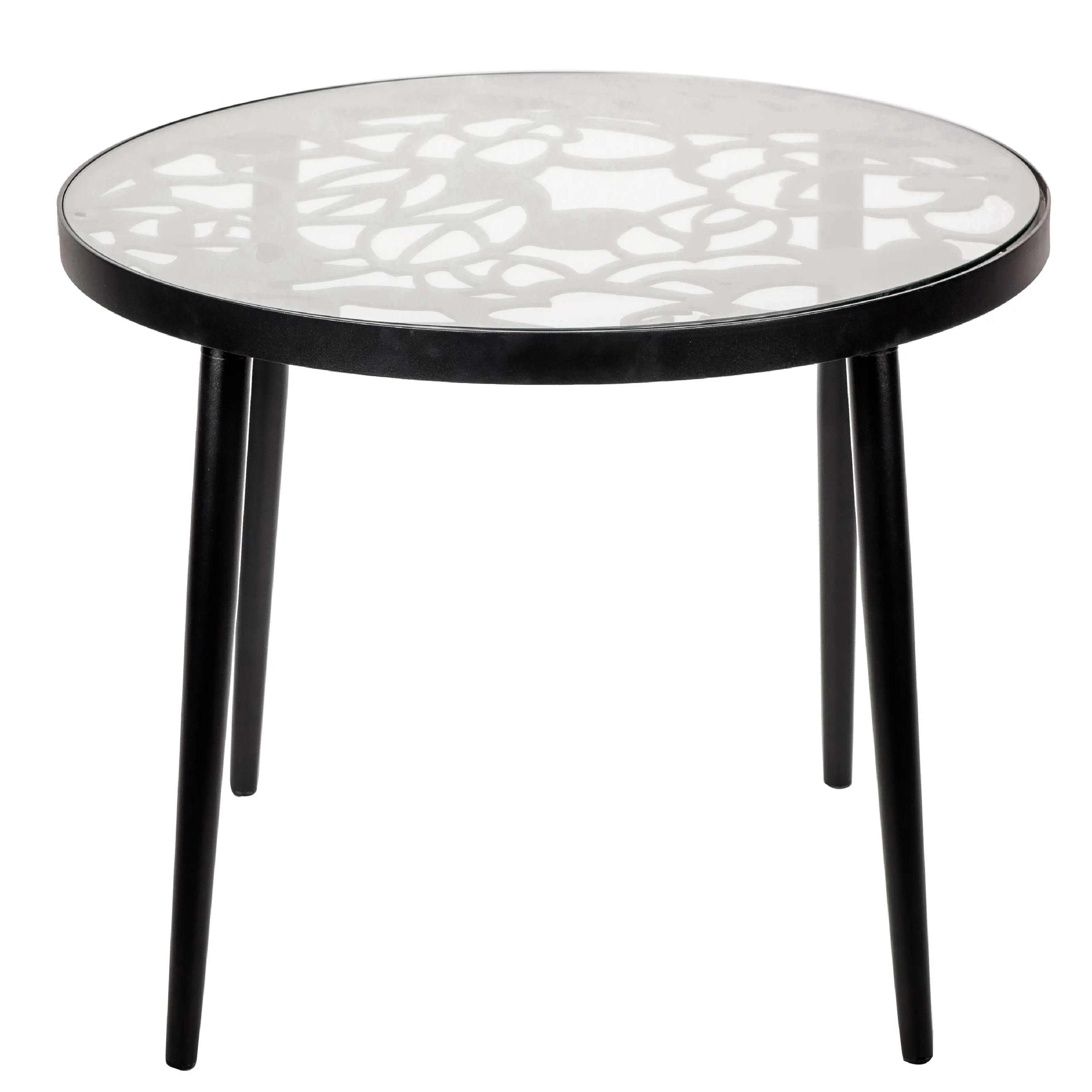 Devon Decorative Modern Floral Cutout Glass Top Patio Coffee Side Table with Aluminum Frame for Indoor Outdoor - 23 x 23