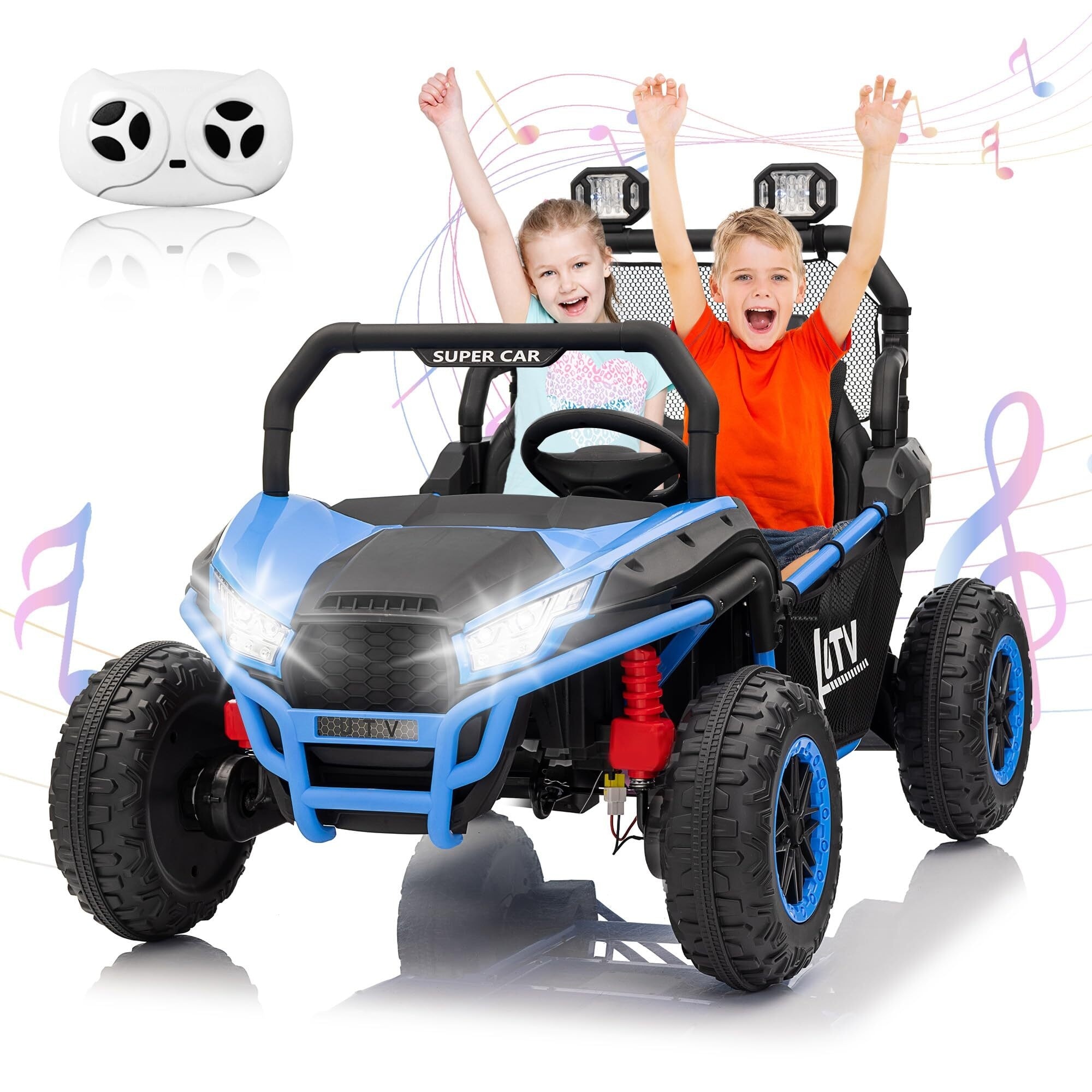 12V Dual-Motor Kids UTV Ride-On Car, 3.7 MPH, 4-Wheel Suspension, Remote Control, LED Lights, Music & Horn for Toddlers