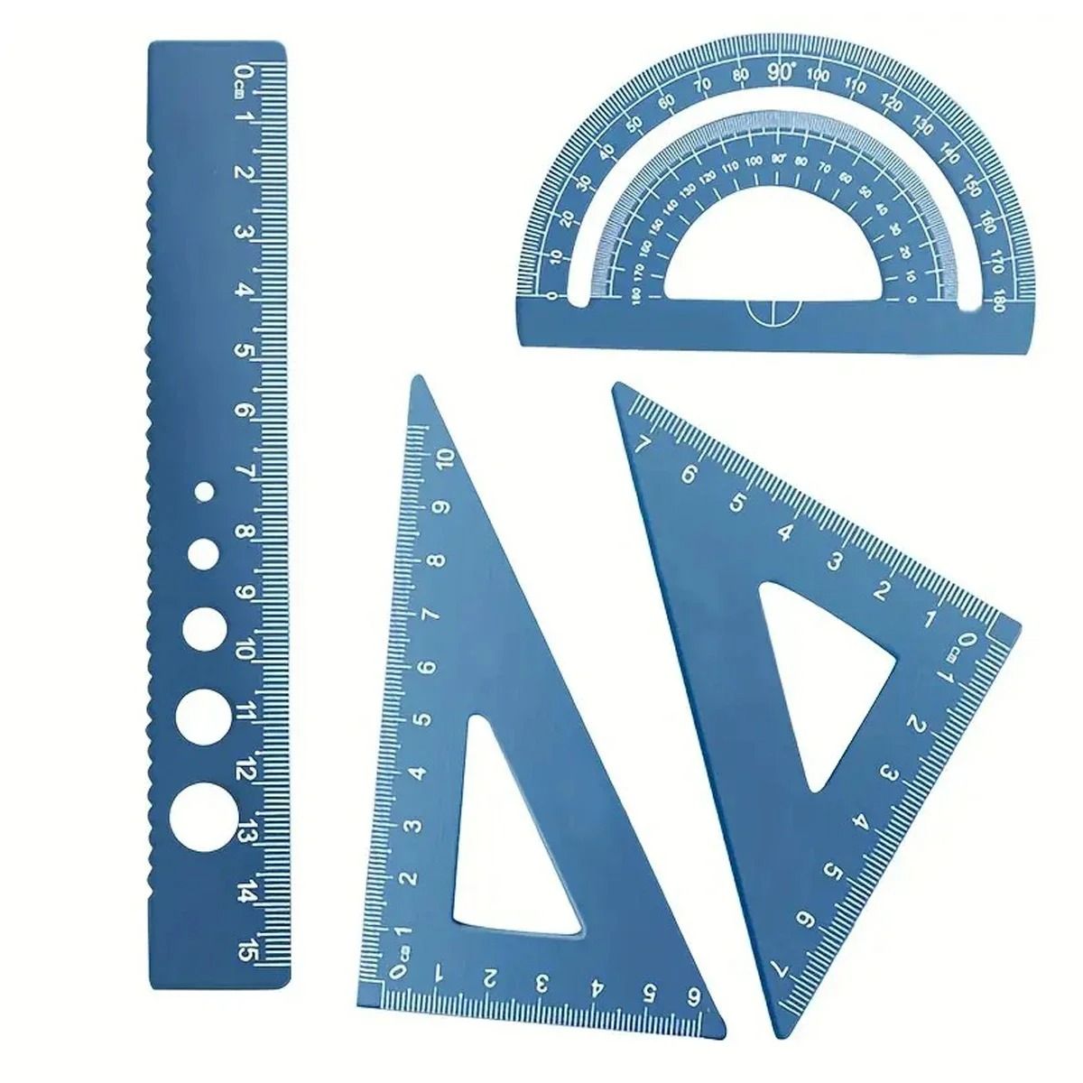 Metal Drafting Set 4 Piece Ruler Measurement Set With Storage Box For Students And Office Use red