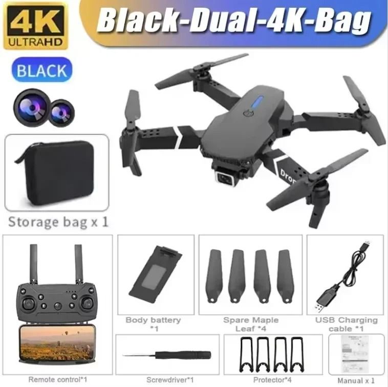 E88 Folding Drone With 4K Dual Camera And Obstacle Avoidance black Dual 4k With Bag
