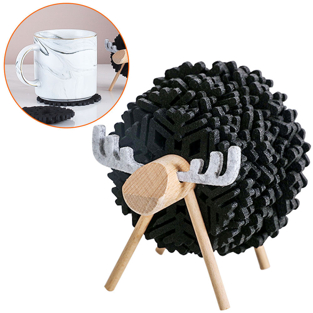 Sheep Felt Coaster Set: Creative Heat Resistant Drink Mat Kawaii Home Decor Black