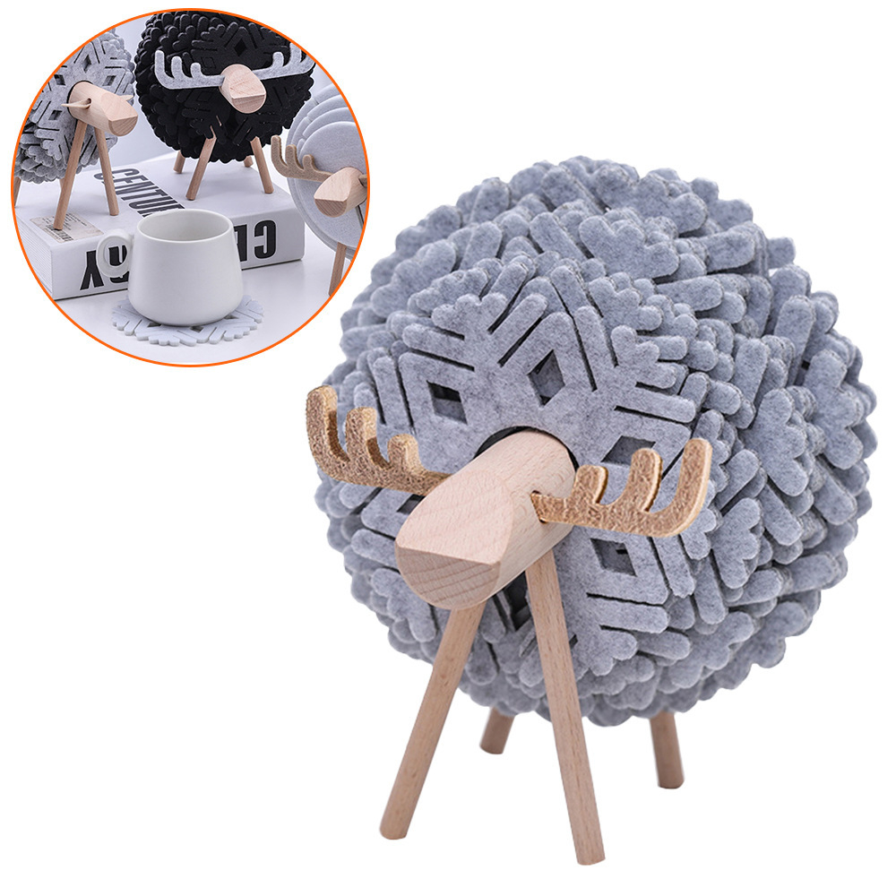 Sheep Felt Coaster Set: Creative Heat Resistant Drink Mat Kawaii Home Decor Color: Dark Gray