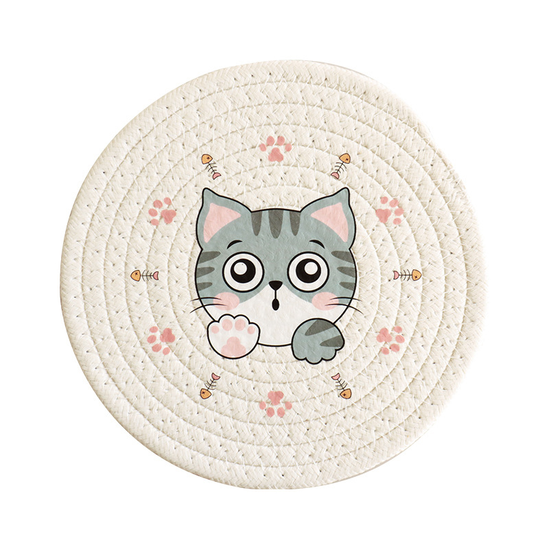 Cute Cat Pattern Coaster Set: Durable Table Pad Insulation Mat For Home Decoration Kitchen Accessories Color: MBG 12cm