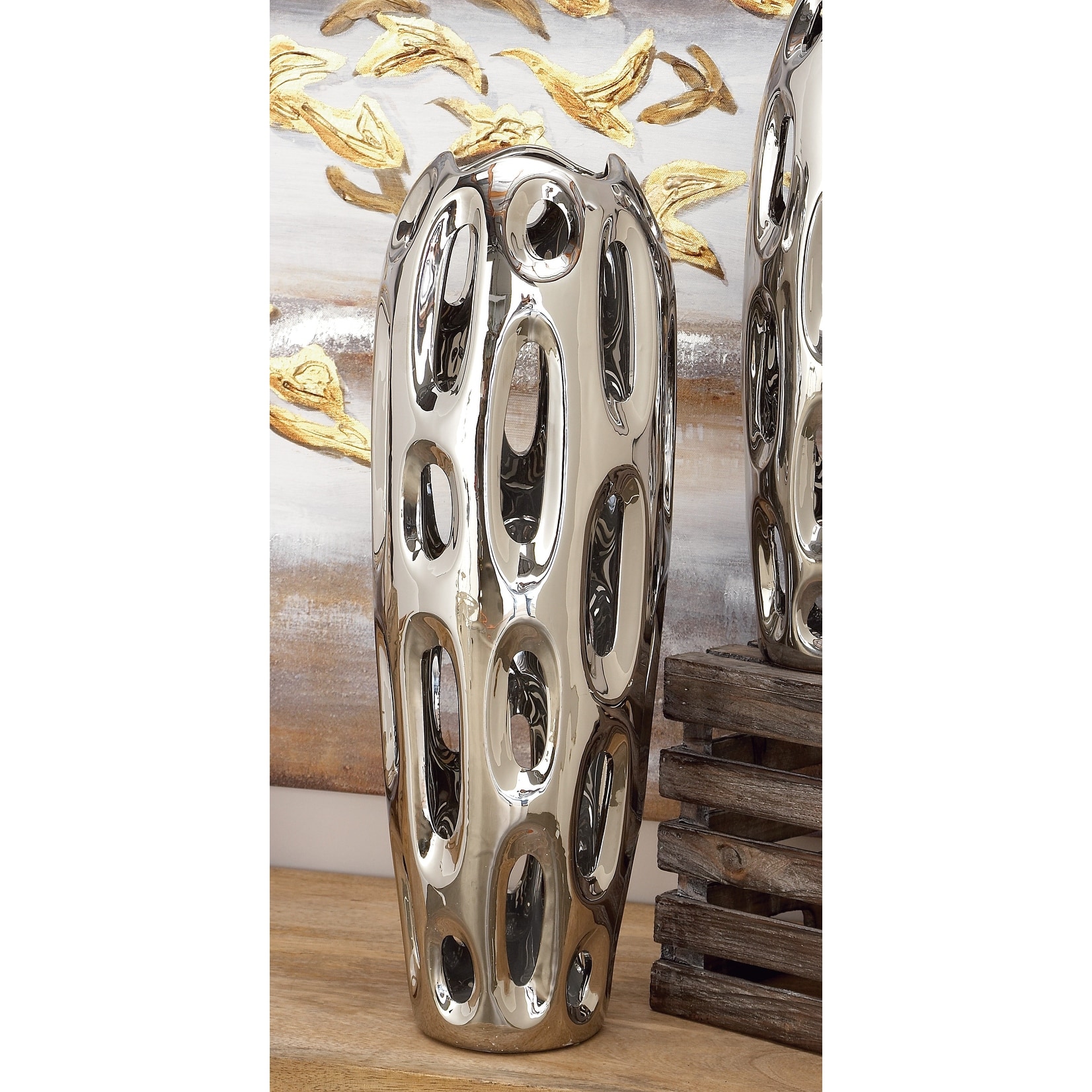CosmoLiving by Cosmopolitan Aluminum Metal Faceted Geometric Vase - Black, Silver, Gold