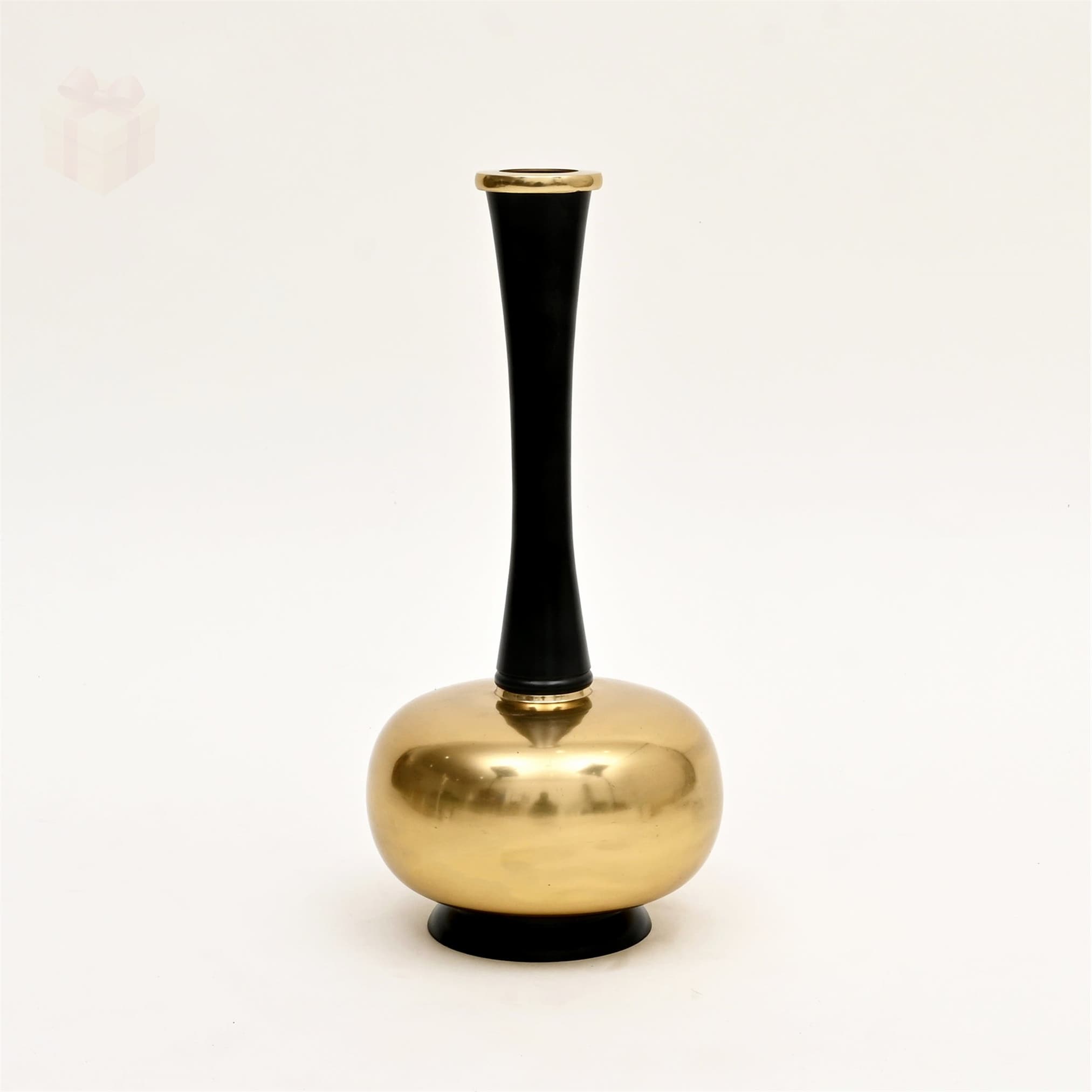 Decorative Minimalist Sleek Gold & Black Aluminum Vase - Ideal for Modern Table Accents and Dried Arrangements