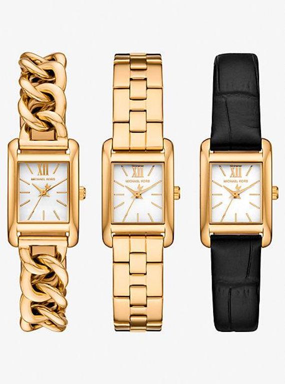 Petite Monroe-Tone And Crocodile-Embossed Leather Watch Strap Set - Metallic - Michael Kors Watches