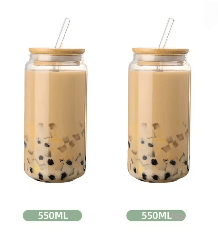 Glass Straw Cup With Wooden Lid Heat Resistant Transparent Tumbler For Hot And Cold Beverages 500ml 2pcs