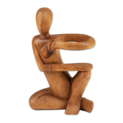 Lend a Hand,'Hand Crafted Suar Wood Bottle Holder'