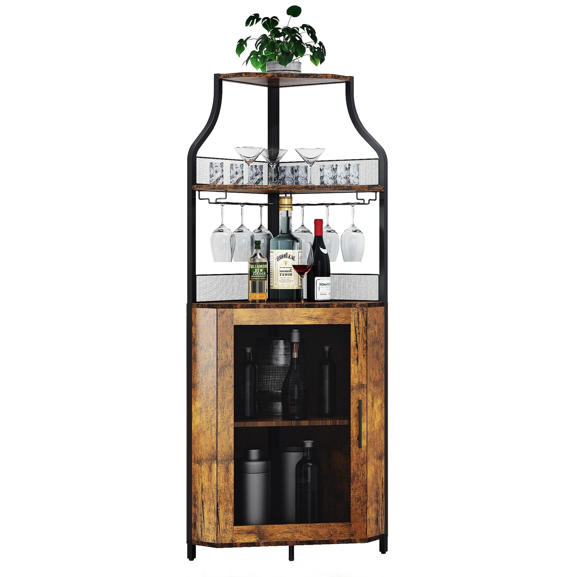 Corner Bar Cabinet - 61" Wine Bar Cabinet and Glass Holder 5-Tiers Storage