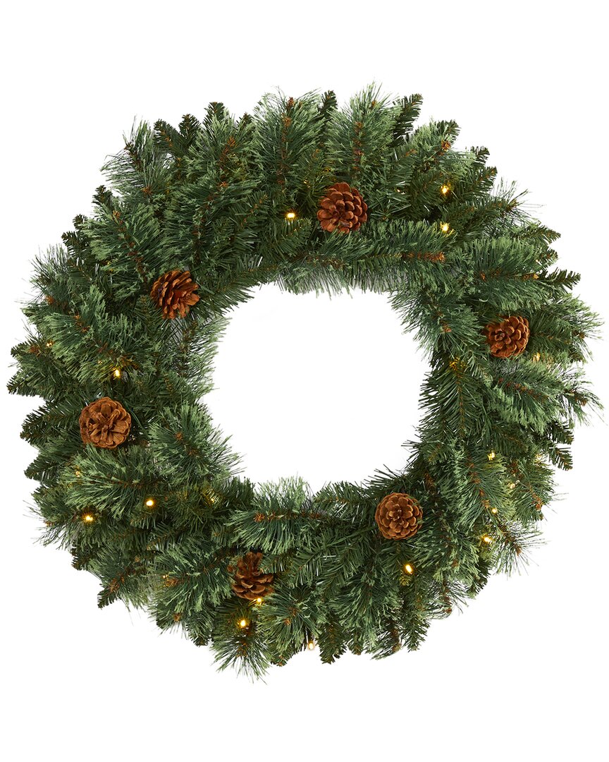 Nearly Natural 24In White Mountain Pine Artificial Wreath With Led Lights