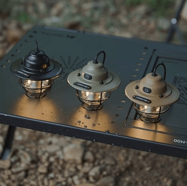 Retro USB Rechargeable Camping Lantern Portable LED Hanging Tent Light For Outdoor Adventures khaki