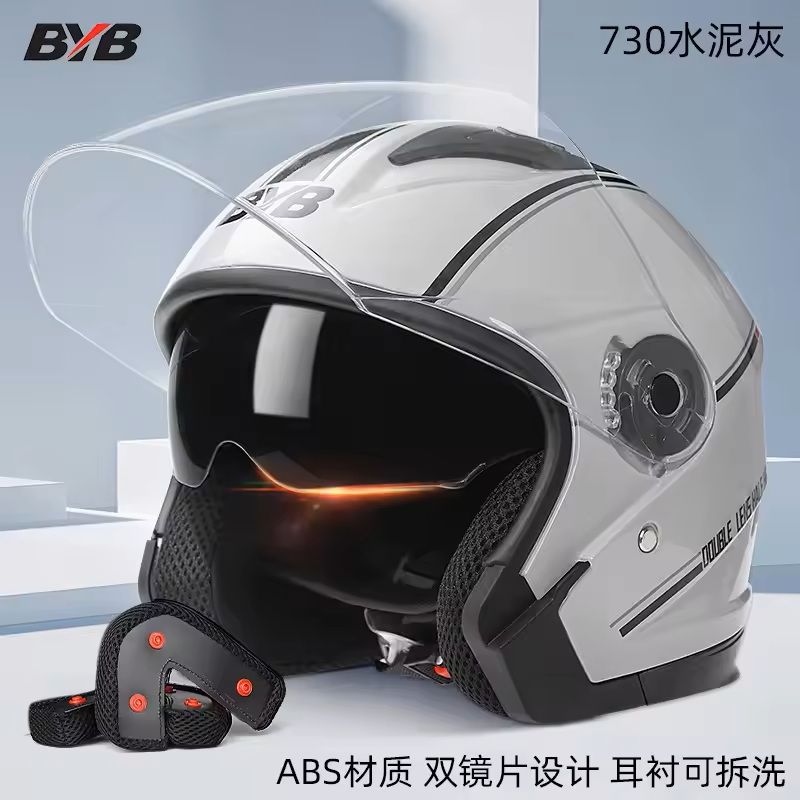 Open Face Motorcycle Helmet With Dual Lens And Sun Visor grey