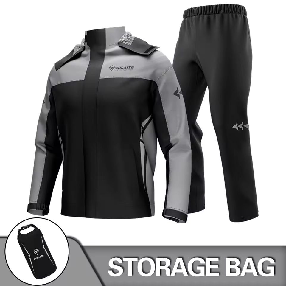 Motorcycle Rain Suit With Waterproof Jacket And Pants For Outdoor Riding l black