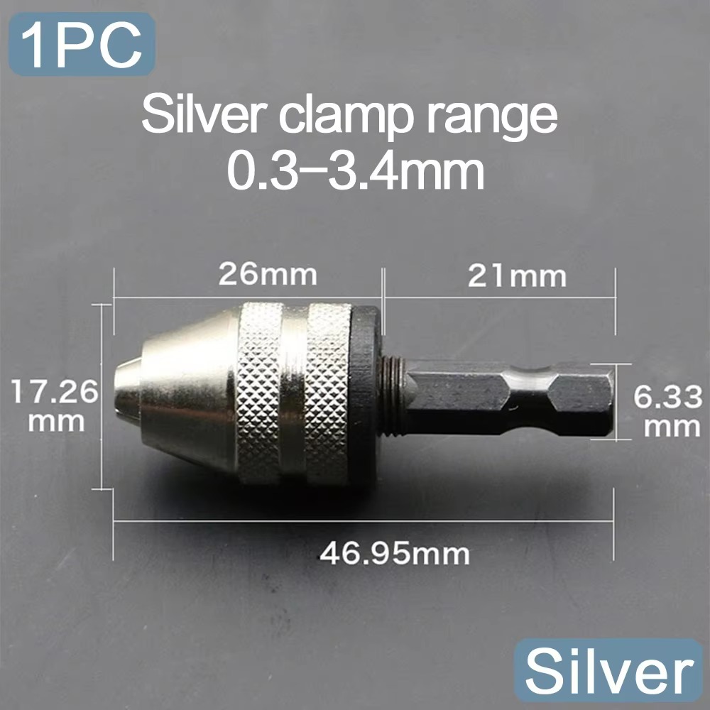 Quick Change Adapter For Drills, STONEGO 3 8" 24UNF Keyless Chuck Converter With Hex Shank silver