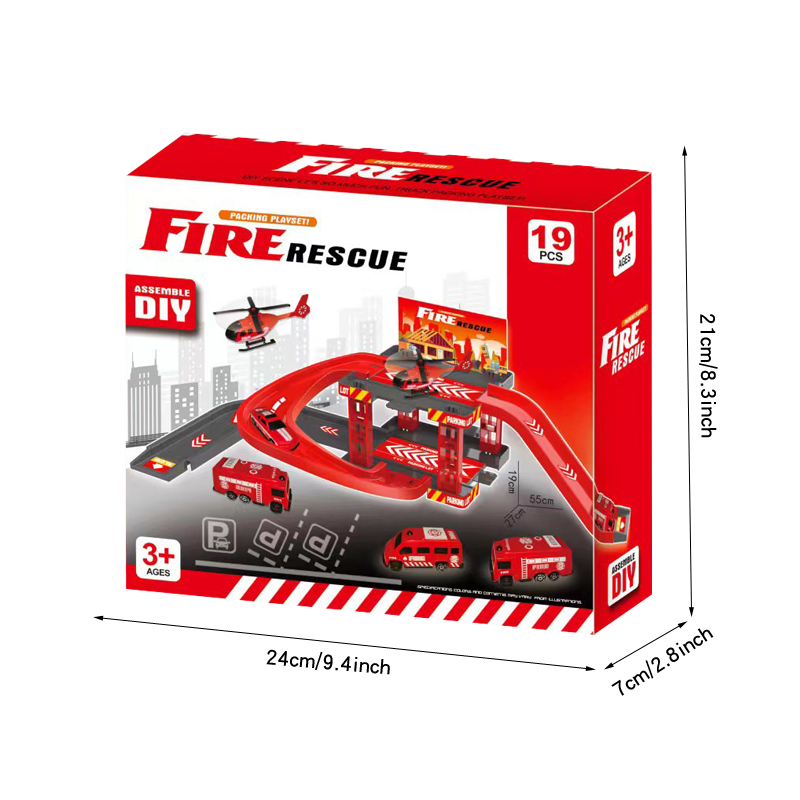 Interactive Track Parking Lot Toys For Kids, Multi Level Car Park Building With Fire & Dinosaur Vehicles fire Rescue